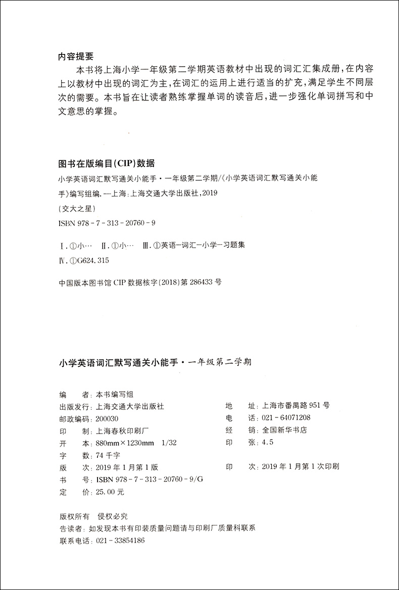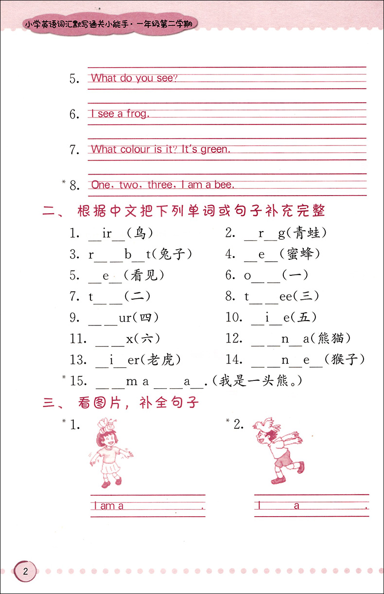 小学英语词汇默写通关小能手 一年级第二学期