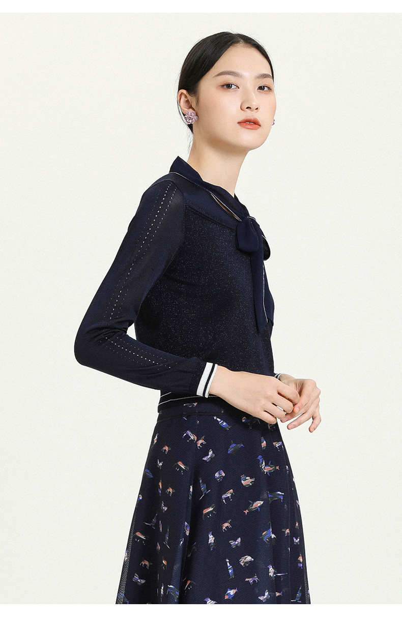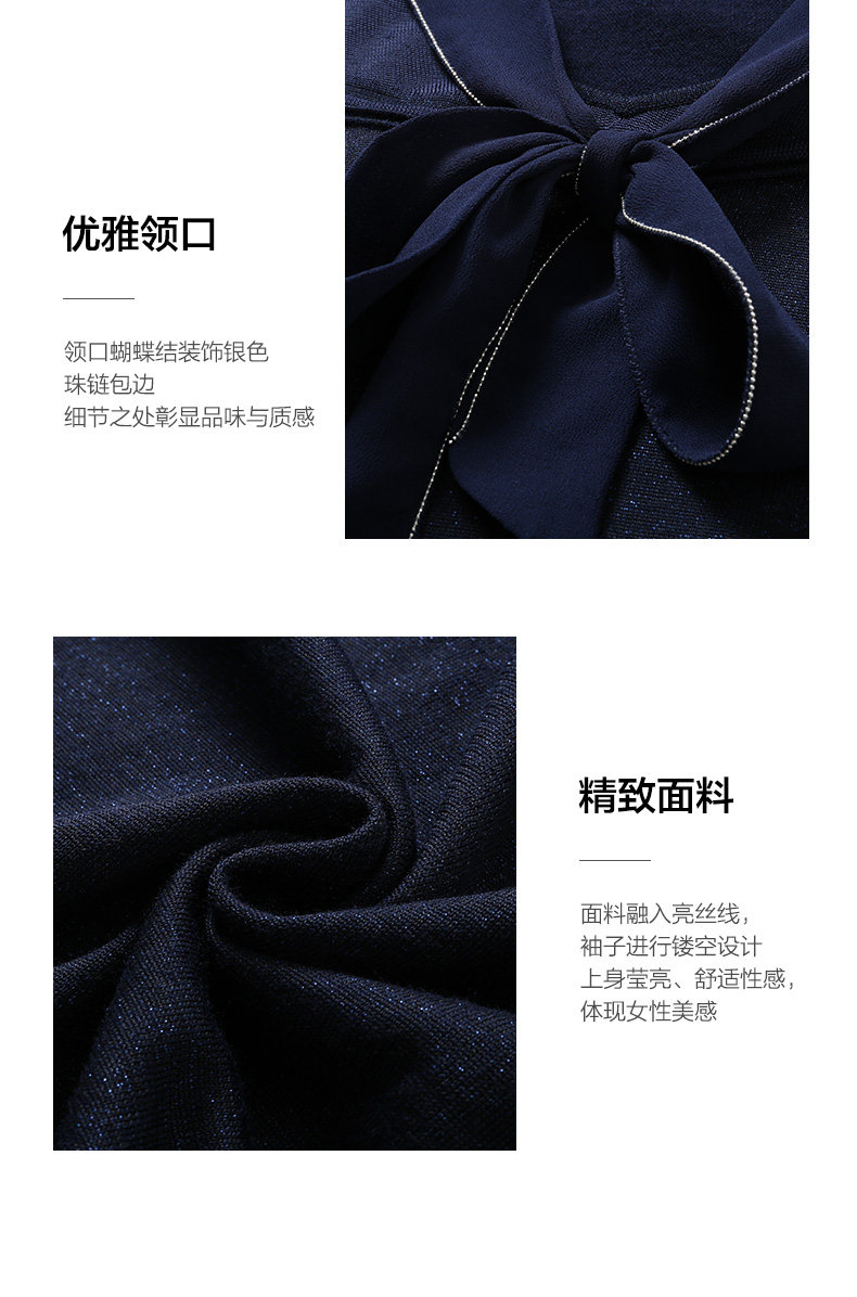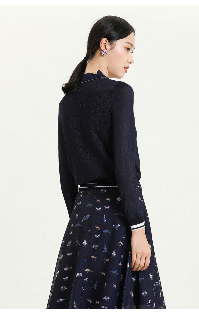 乔万尼秋季新款针织衫拼接镂空小性感羊毛衫薄款舒适长袖上衣ES3M598