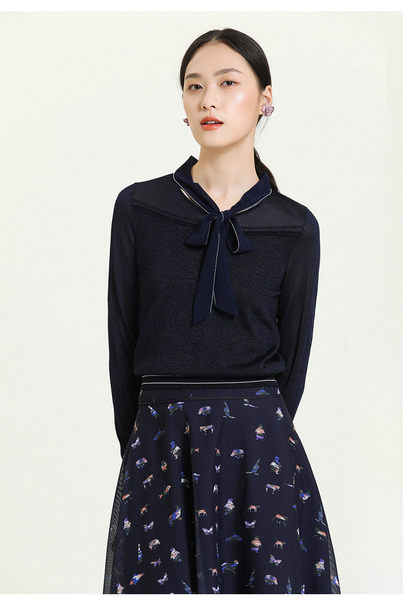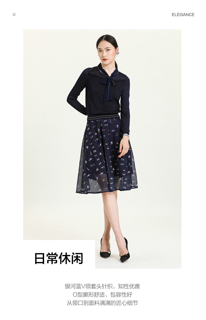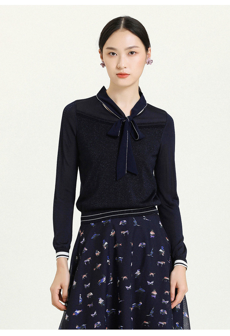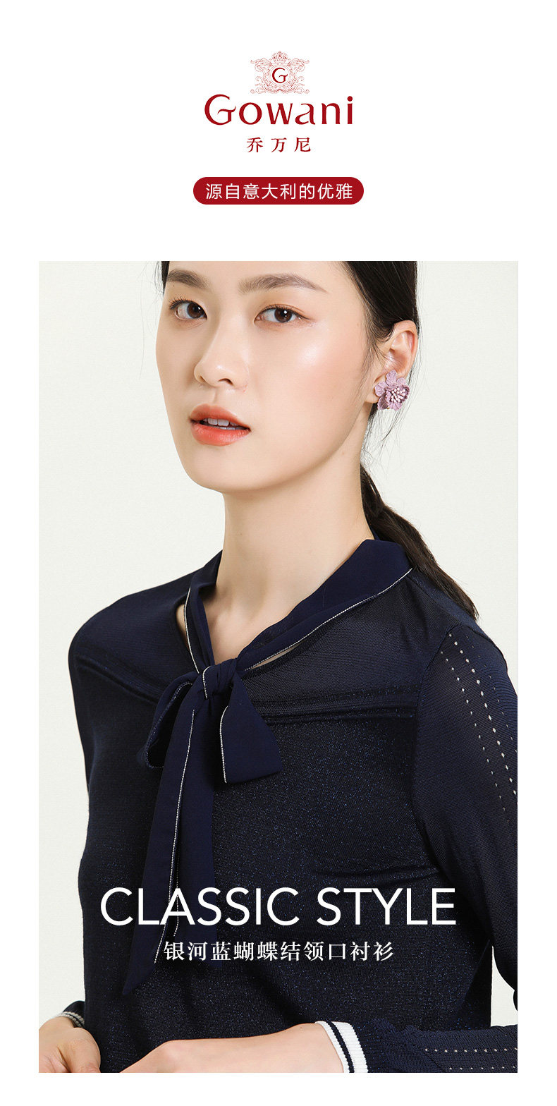 乔万尼秋季新款针织衫拼接镂空小性感羊毛衫薄款舒适长袖上衣ES3M598