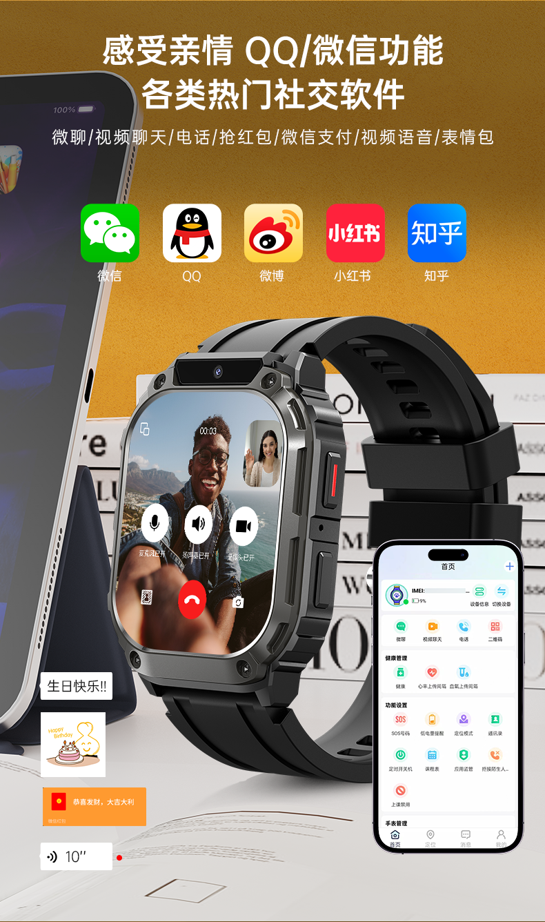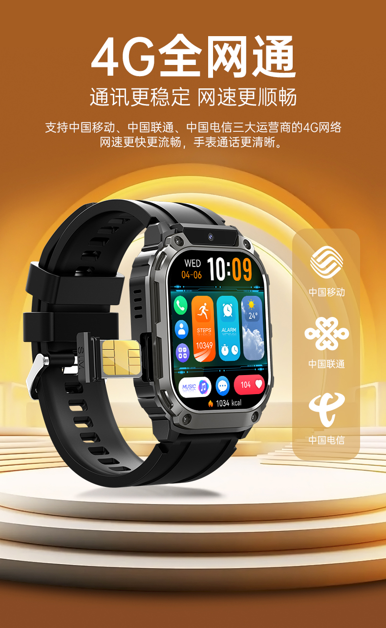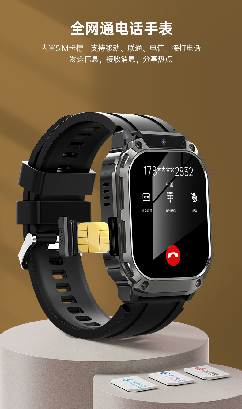 【内置SIM卡槽 200w高清像素 IP67级防水】Q39 4G全网通插卡电话手表 2+16G ds(qy)