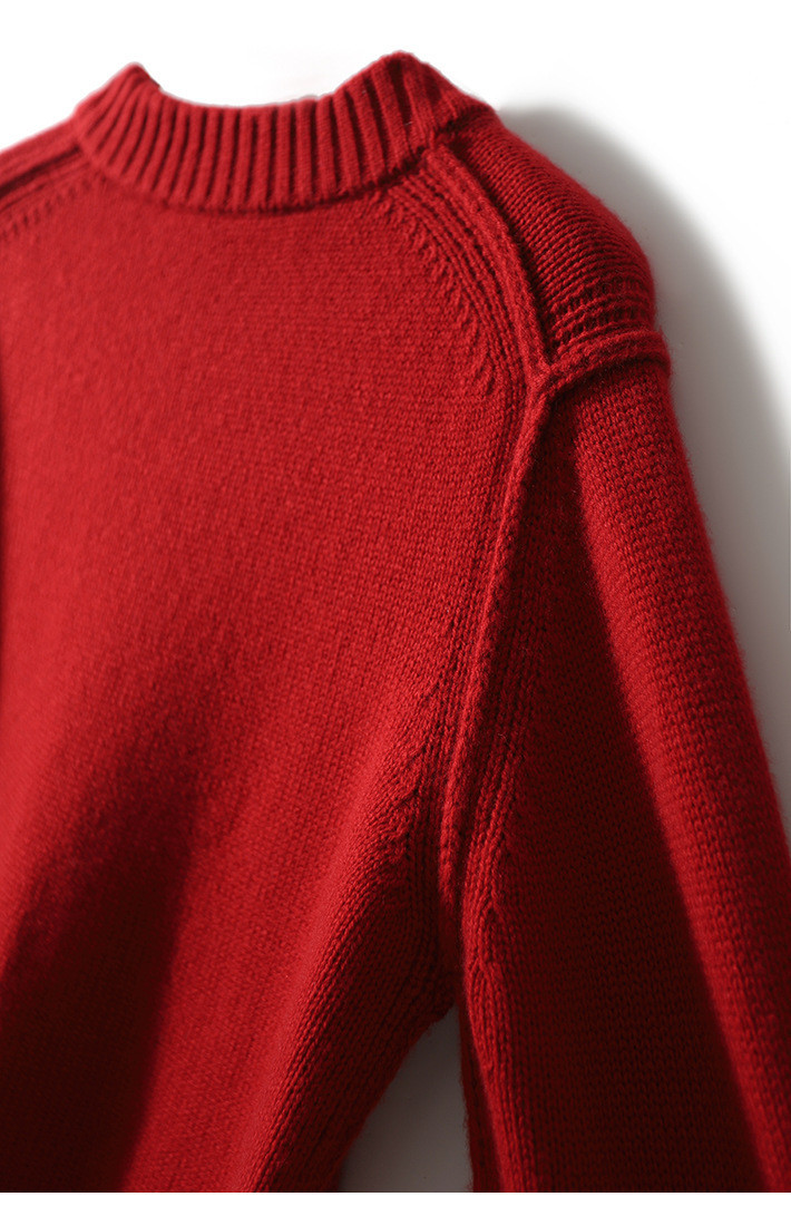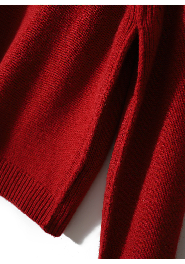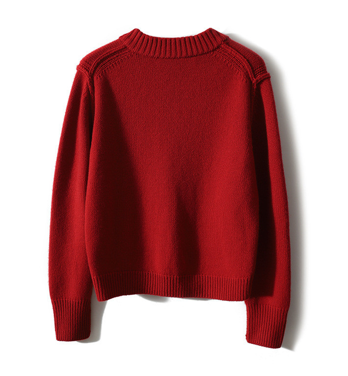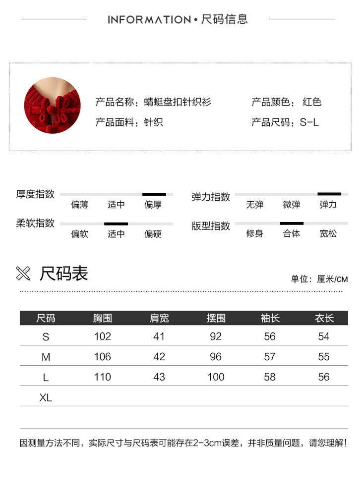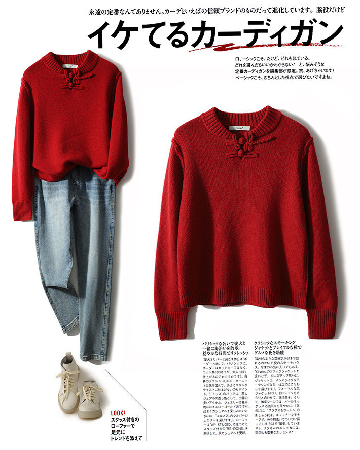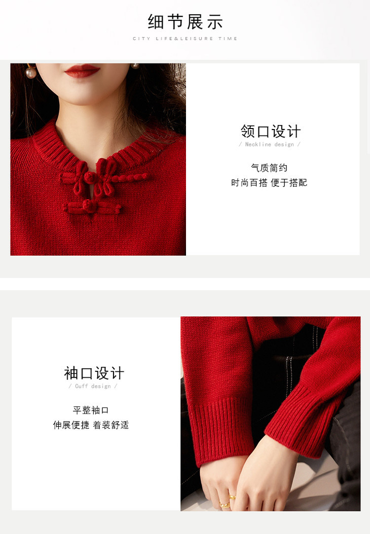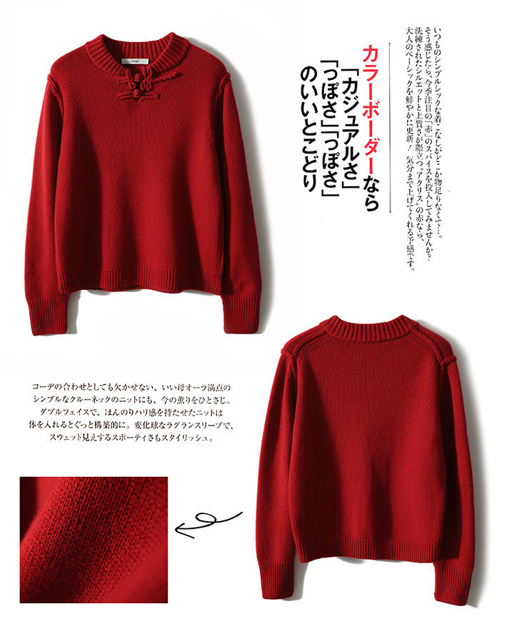 YYM7721 轻复古国风范别致蜻蜓盘扣立领针织毛衣女洋气红色上衣厚