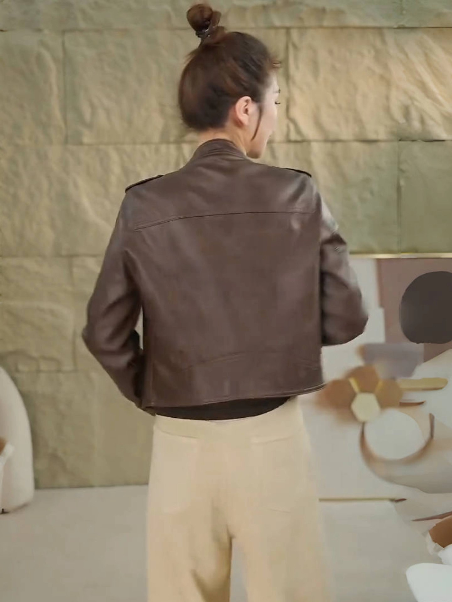 8F-AWY25130时尚洋气皮衣外套女秋冬新款韩版宽松显瘦短款夹克小个子休闲上衣