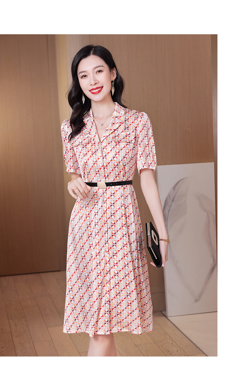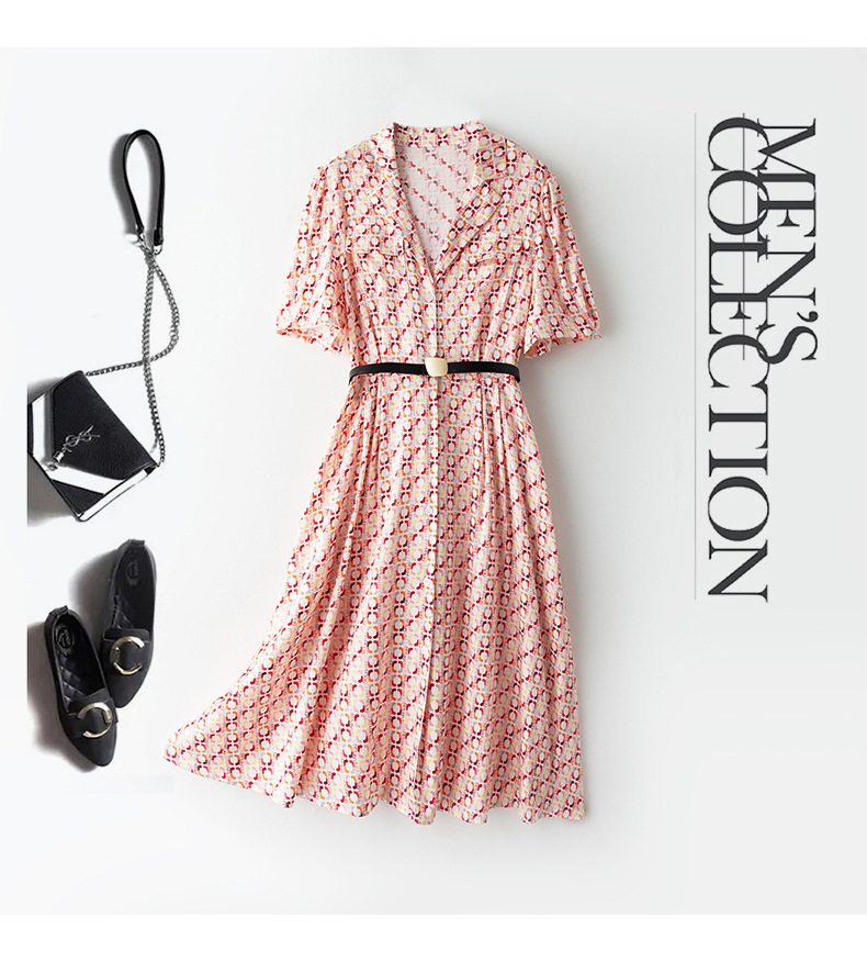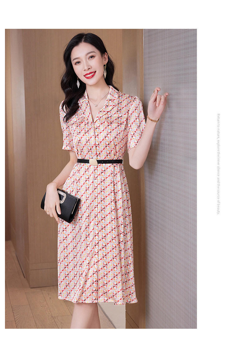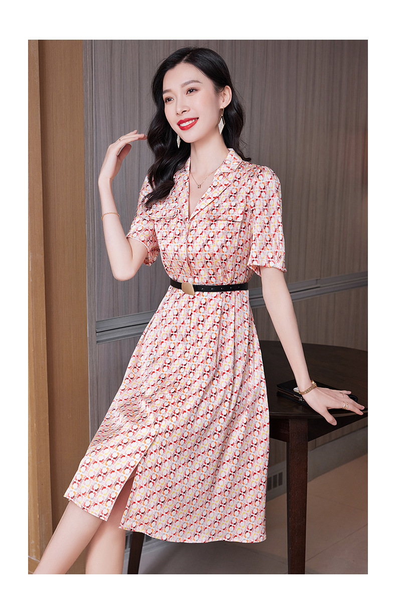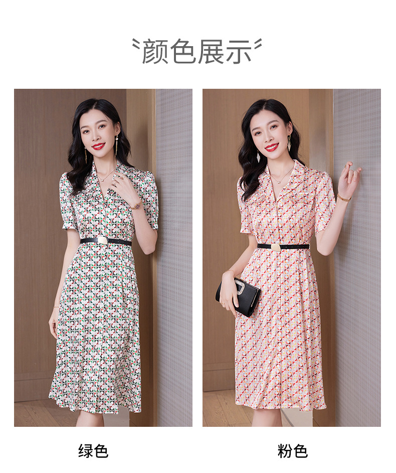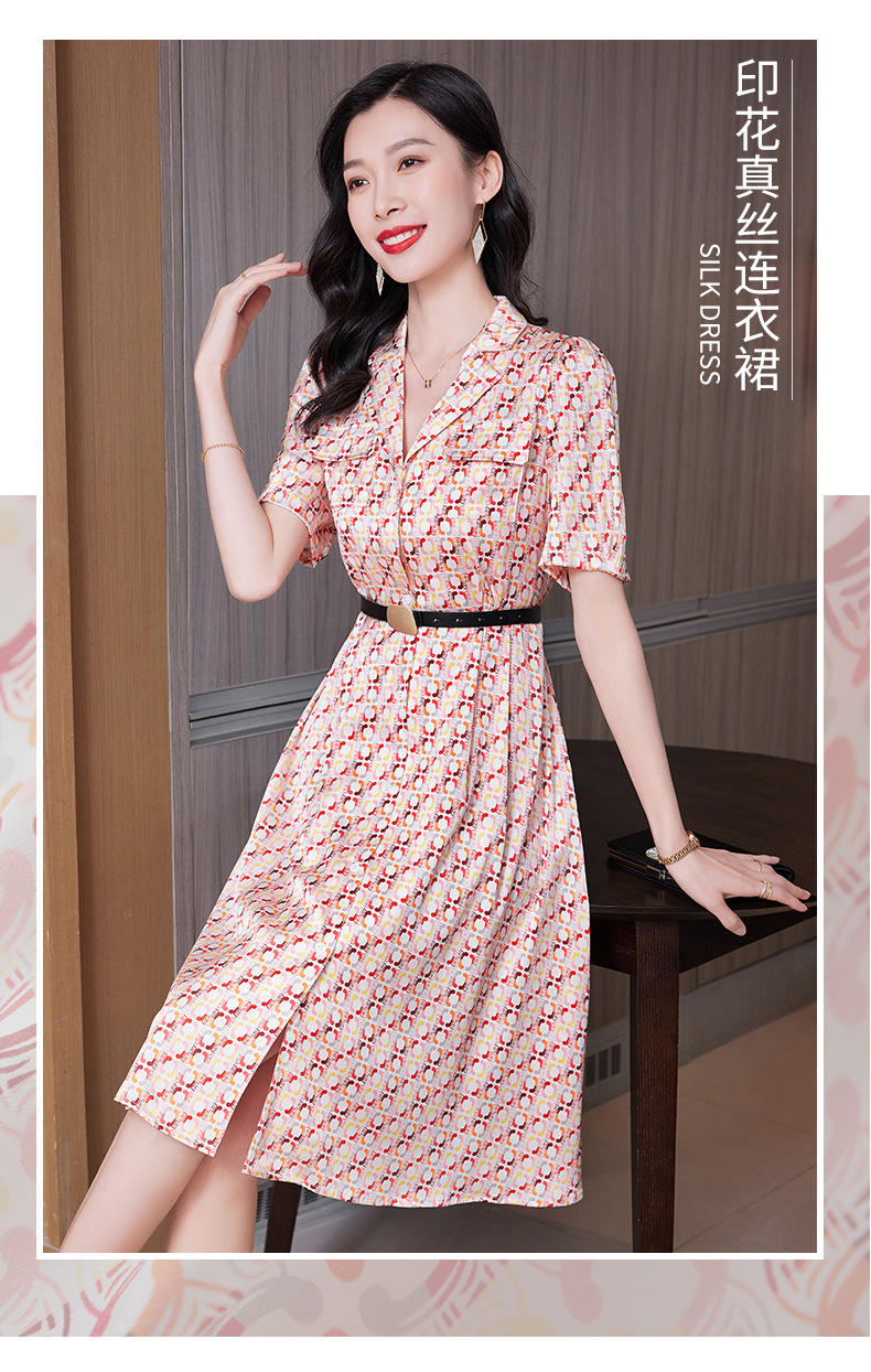 ASE-23002重磅弹力缎真丝连衣裙女夏新款西装领高腰显瘦气质桑蚕丝裙