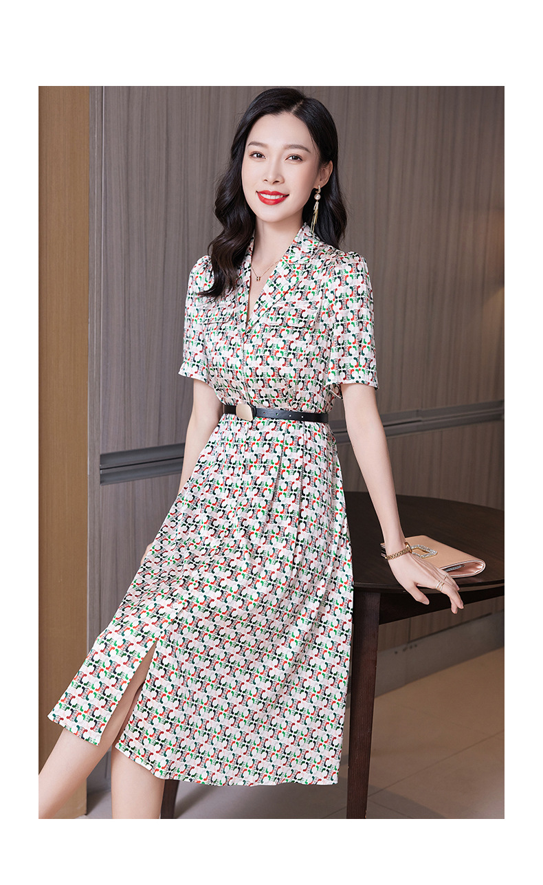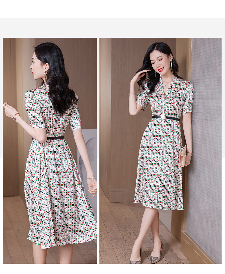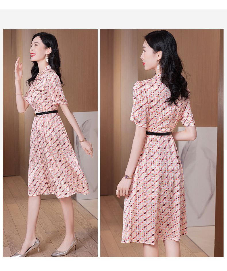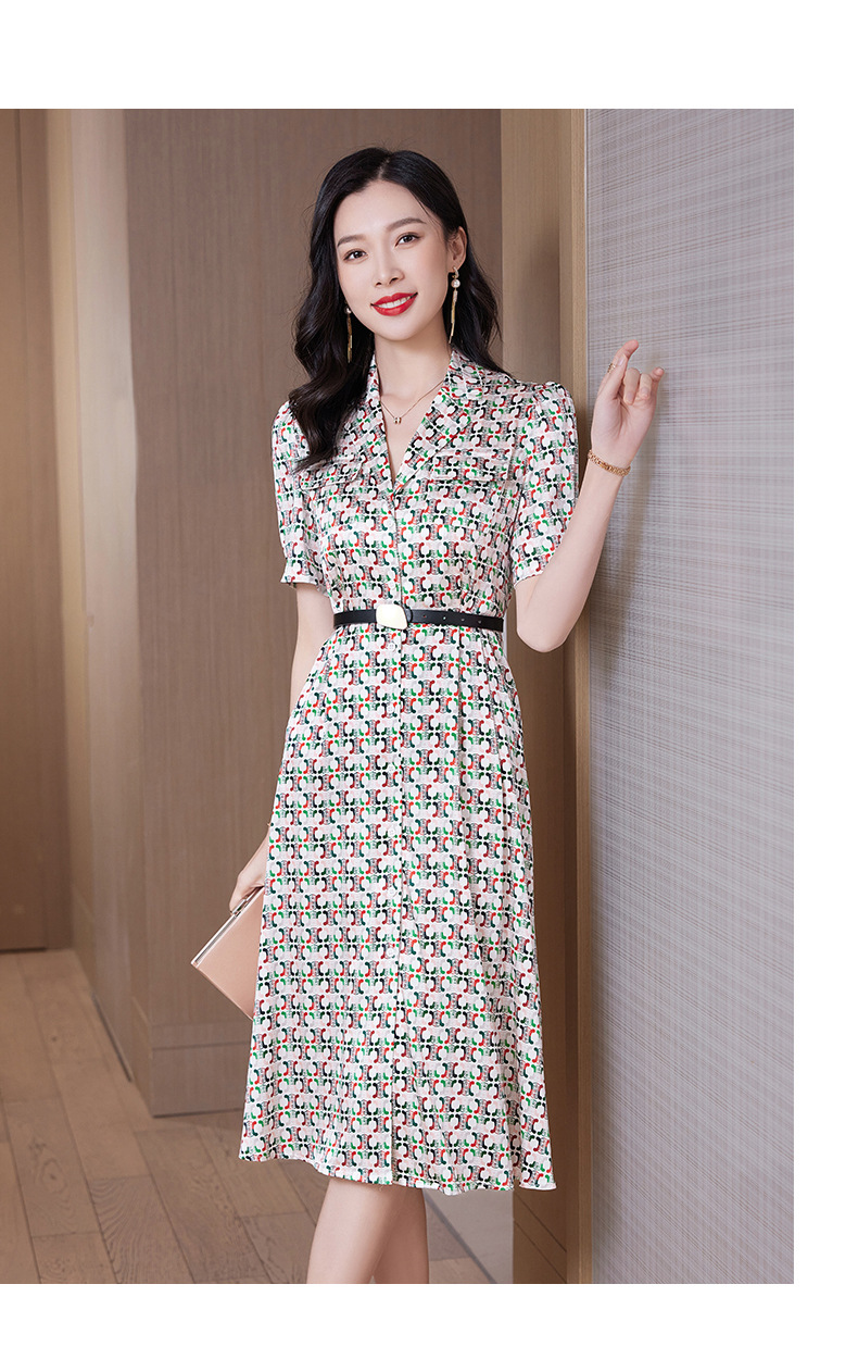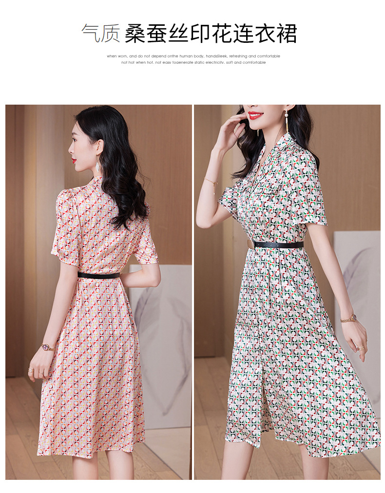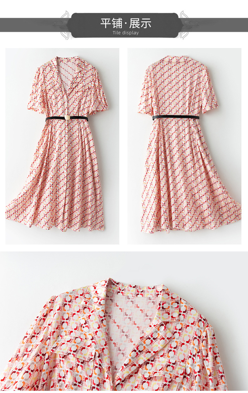 ASE-23002重磅弹力缎真丝连衣裙女夏新款西装领高腰显瘦气质桑蚕丝裙