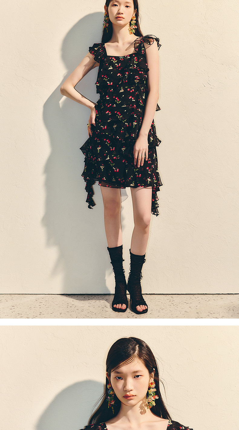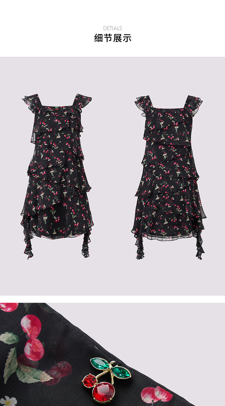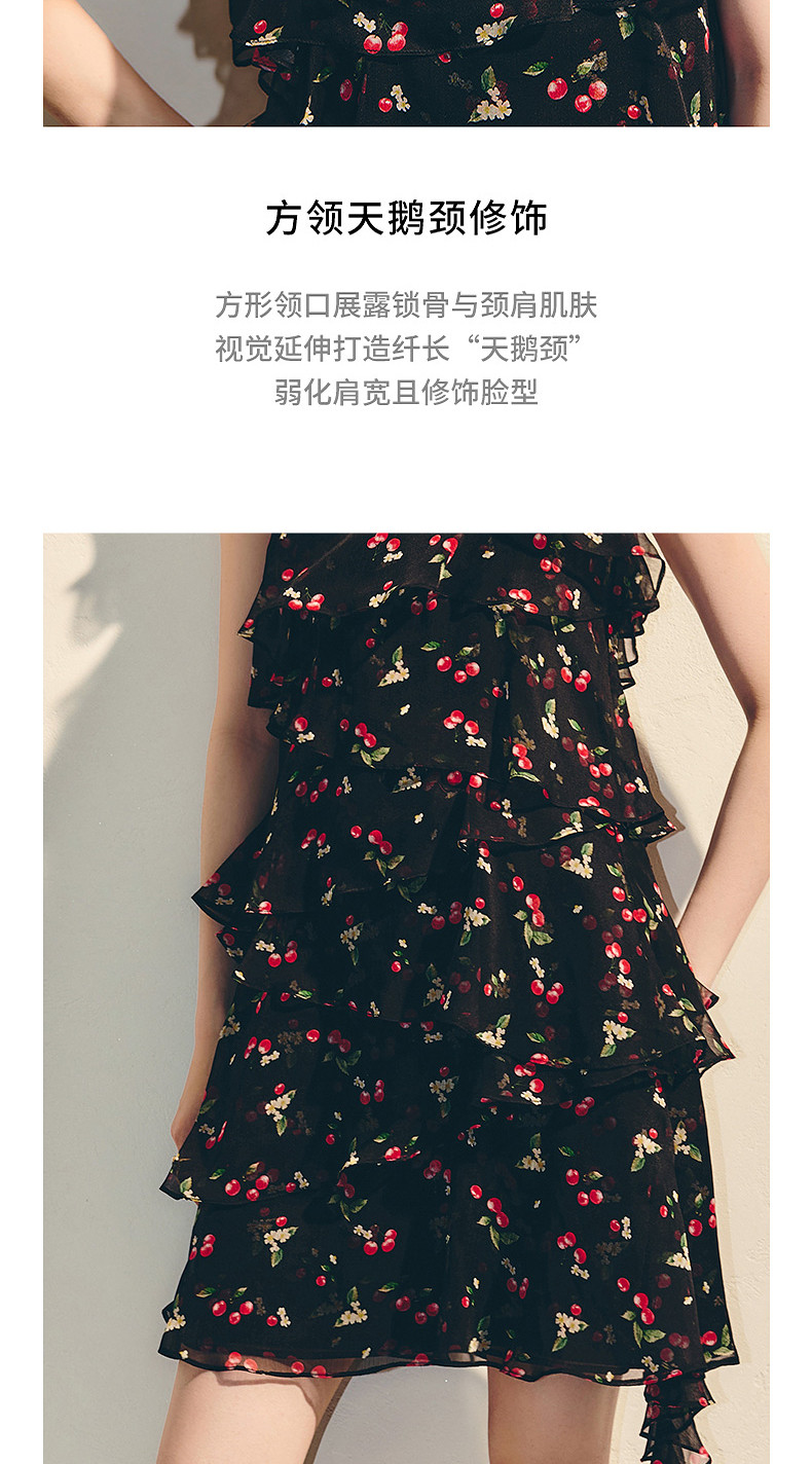 MAXRIENY夏日樱桃裙收腰X型不规则短连衣裙25夏款浪漫优雅感裙子(货号:MS86DR092)