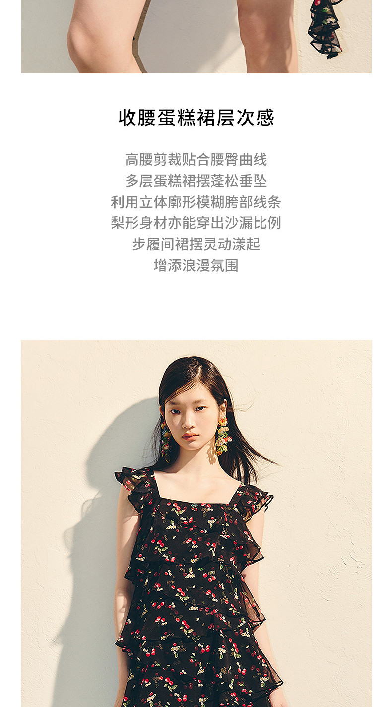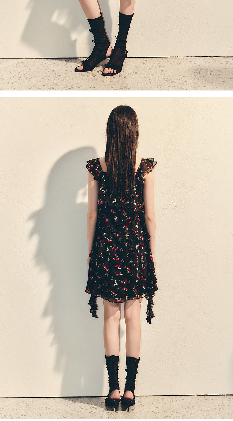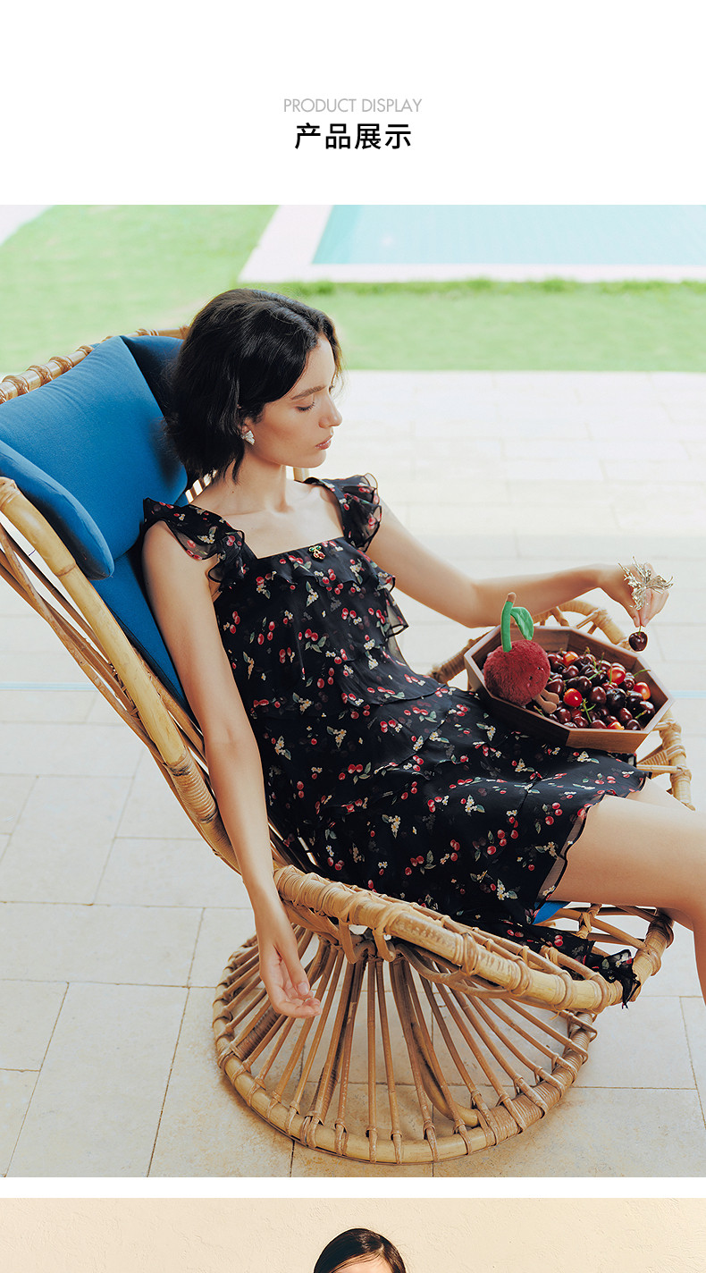 MAXRIENY夏日樱桃裙收腰X型不规则短连衣裙25夏款浪漫优雅感裙子(货号:MS86DR092)