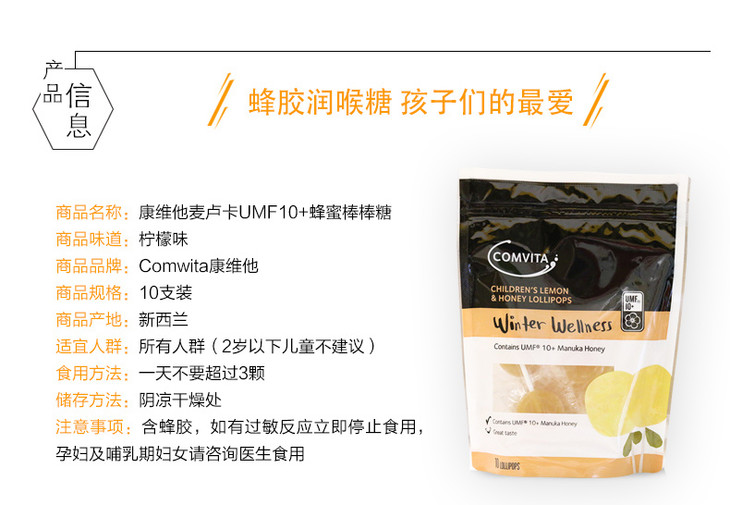 【海外直邮】康维他Comvita 儿童棒棒糖 15支