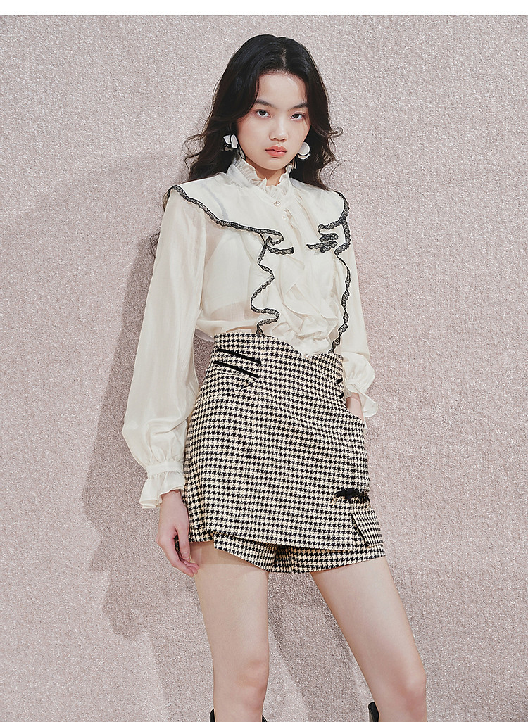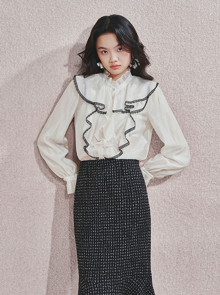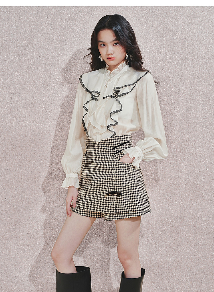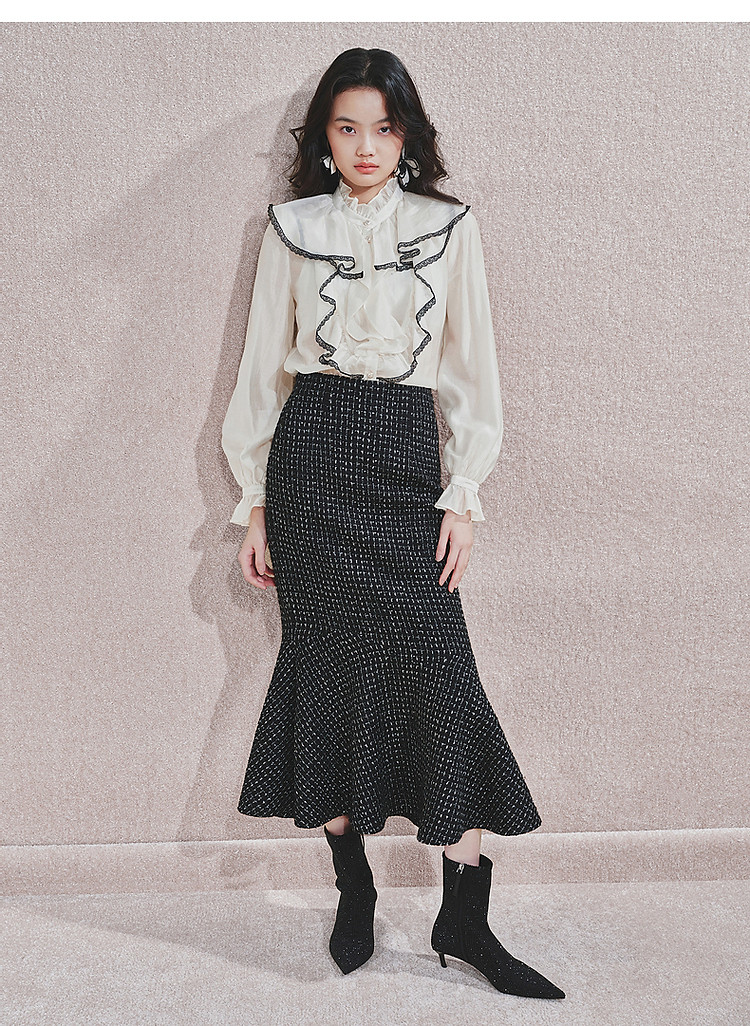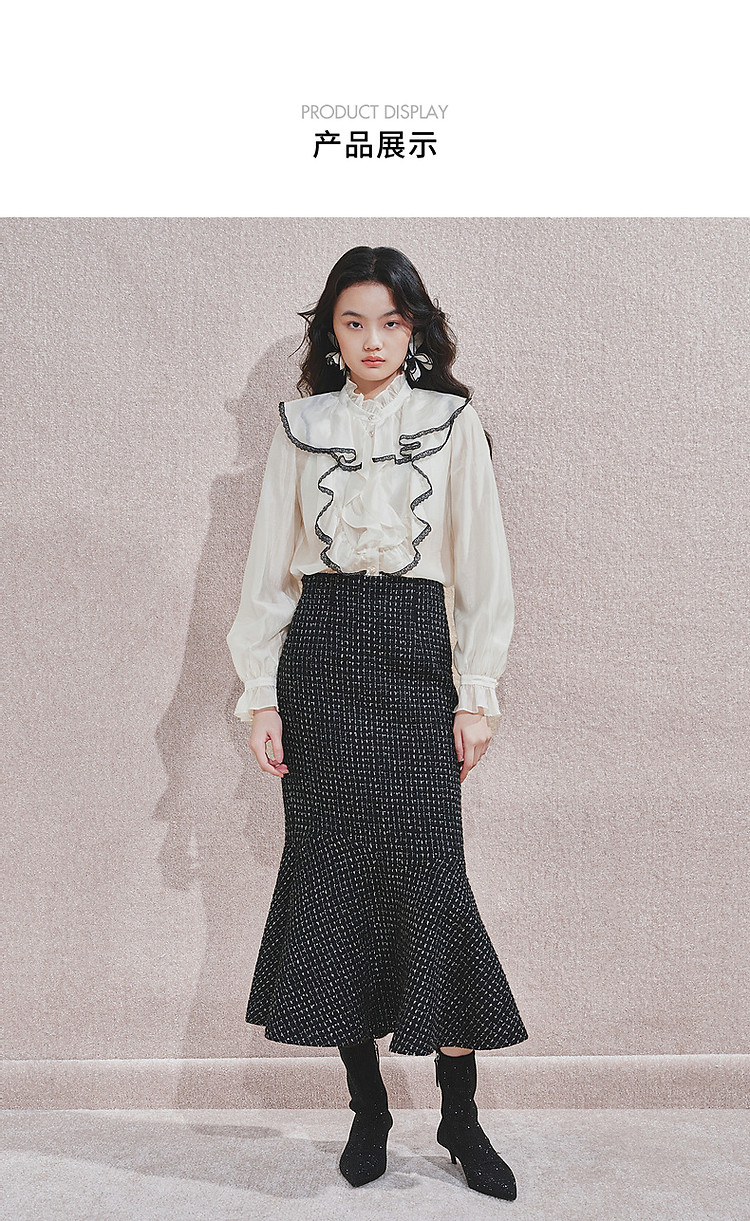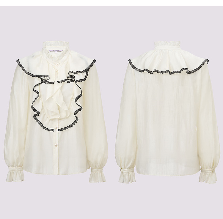 MAXRIENY精致复古蕾丝雪纺衫2024秋冬新款修身显瘦经典赫本风上衣