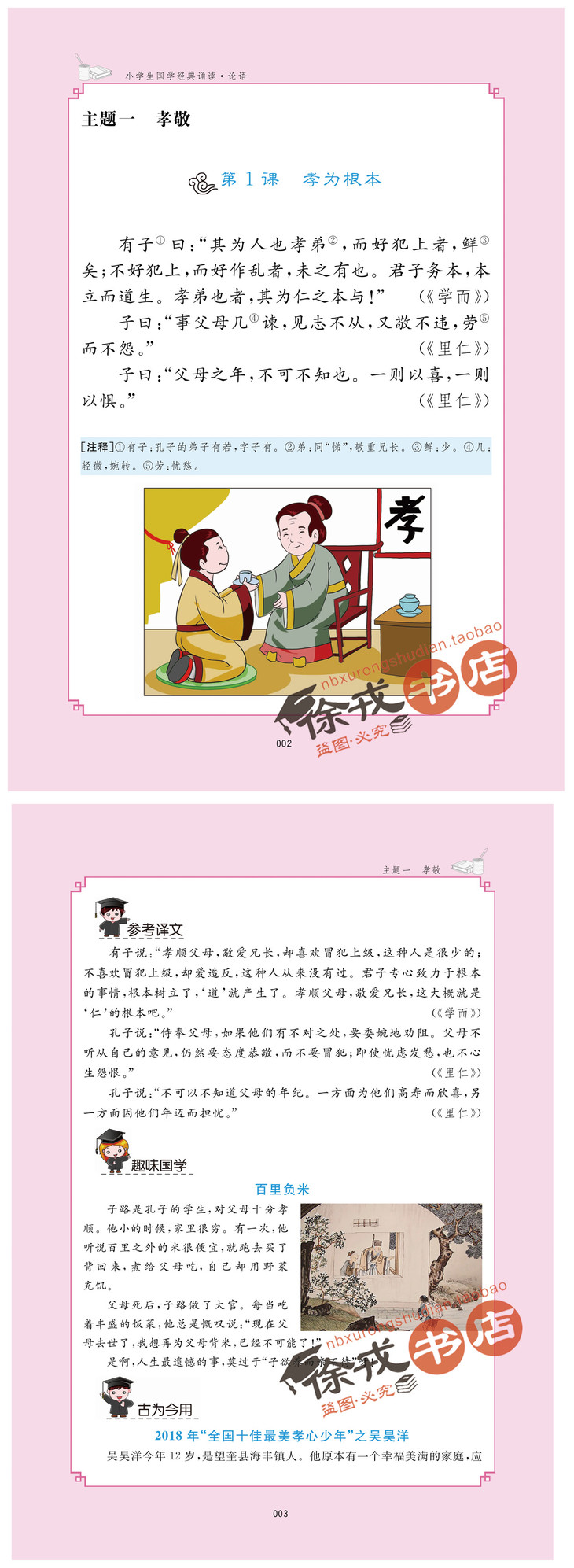 《小学生经典国学》系列图书分为一至六年级六册,涵盖《弟子规》《千字文》《三字经》《笠翁对韵》《论语》《大学》《中庸》《孟子》《老子》《庄子》《史记》《资治通鉴》《历代散文选》等经典,根据学生身心发展特征和教育规律,精选切合时代的篇章,内文选其精华,旨在品读国学精粹,传承经典文化。