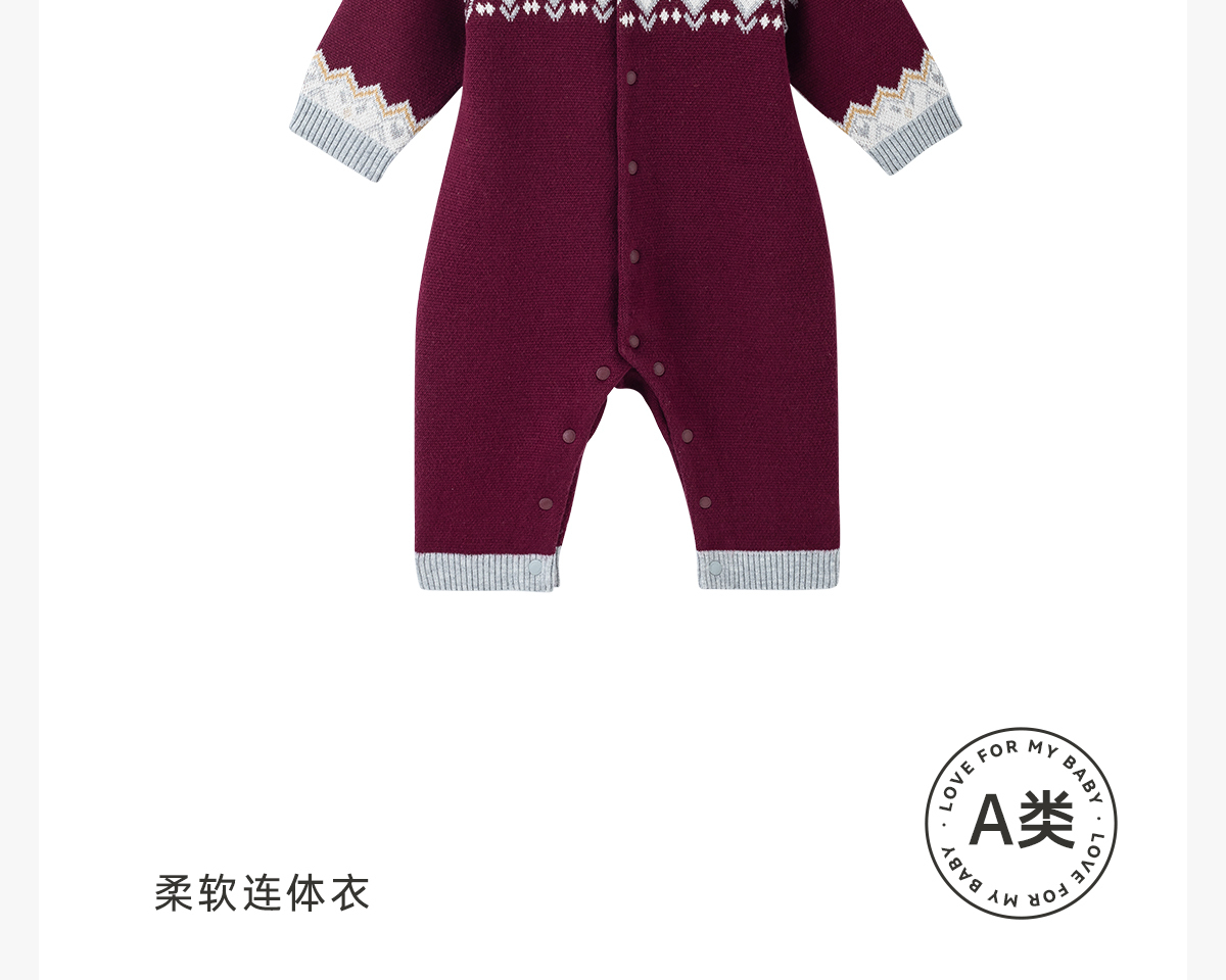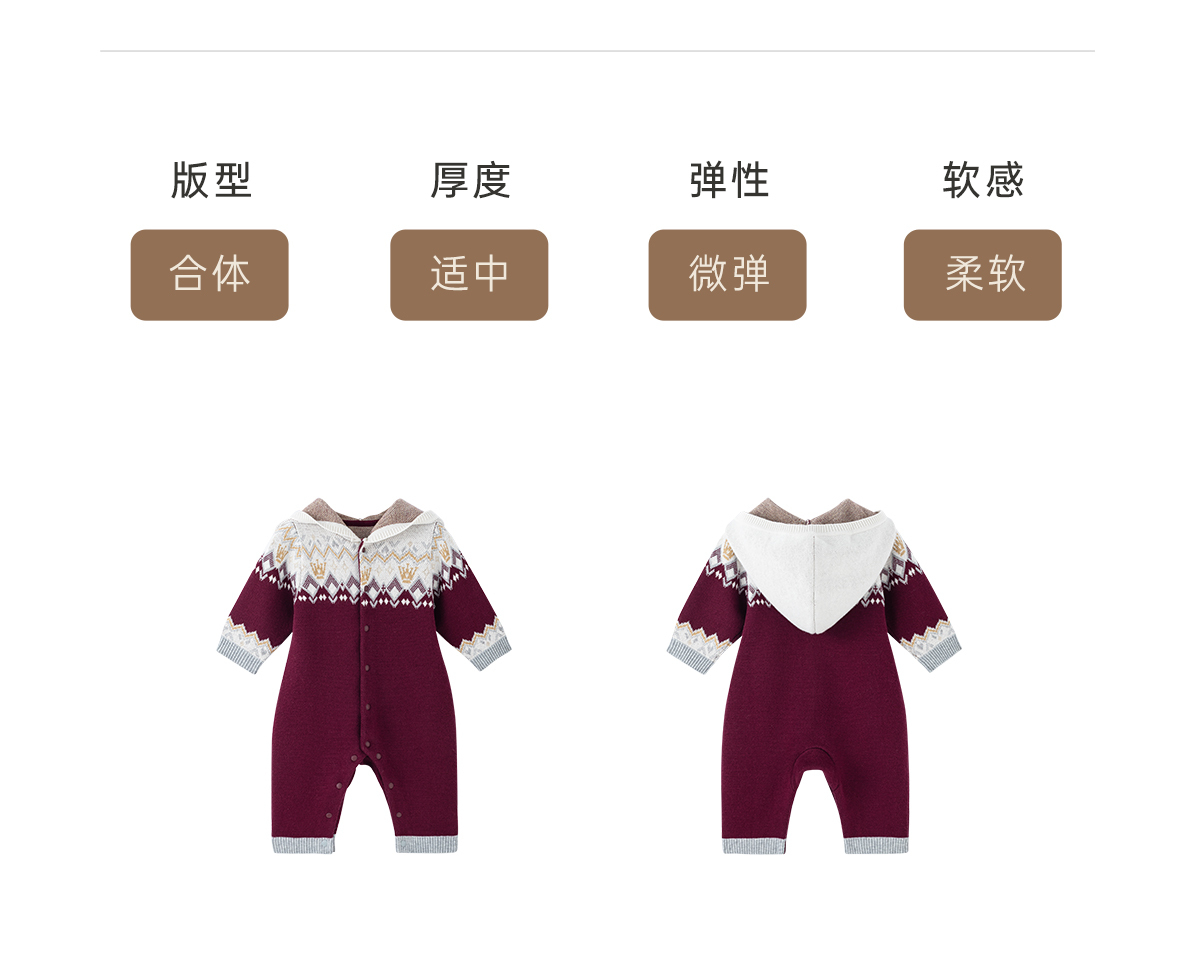 【商场同款】英氏婴儿衣服秋季羊毛月亮裆哈衣连体衣爬服