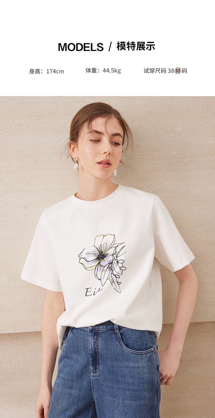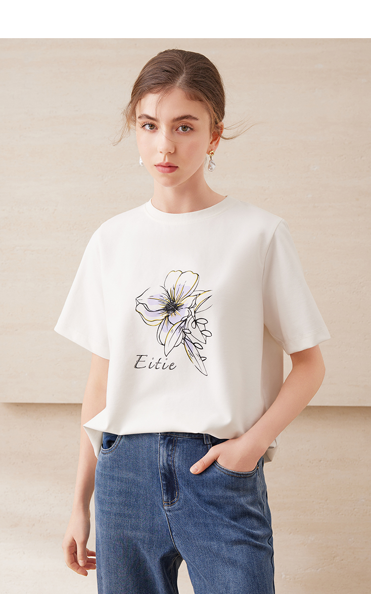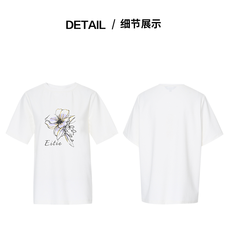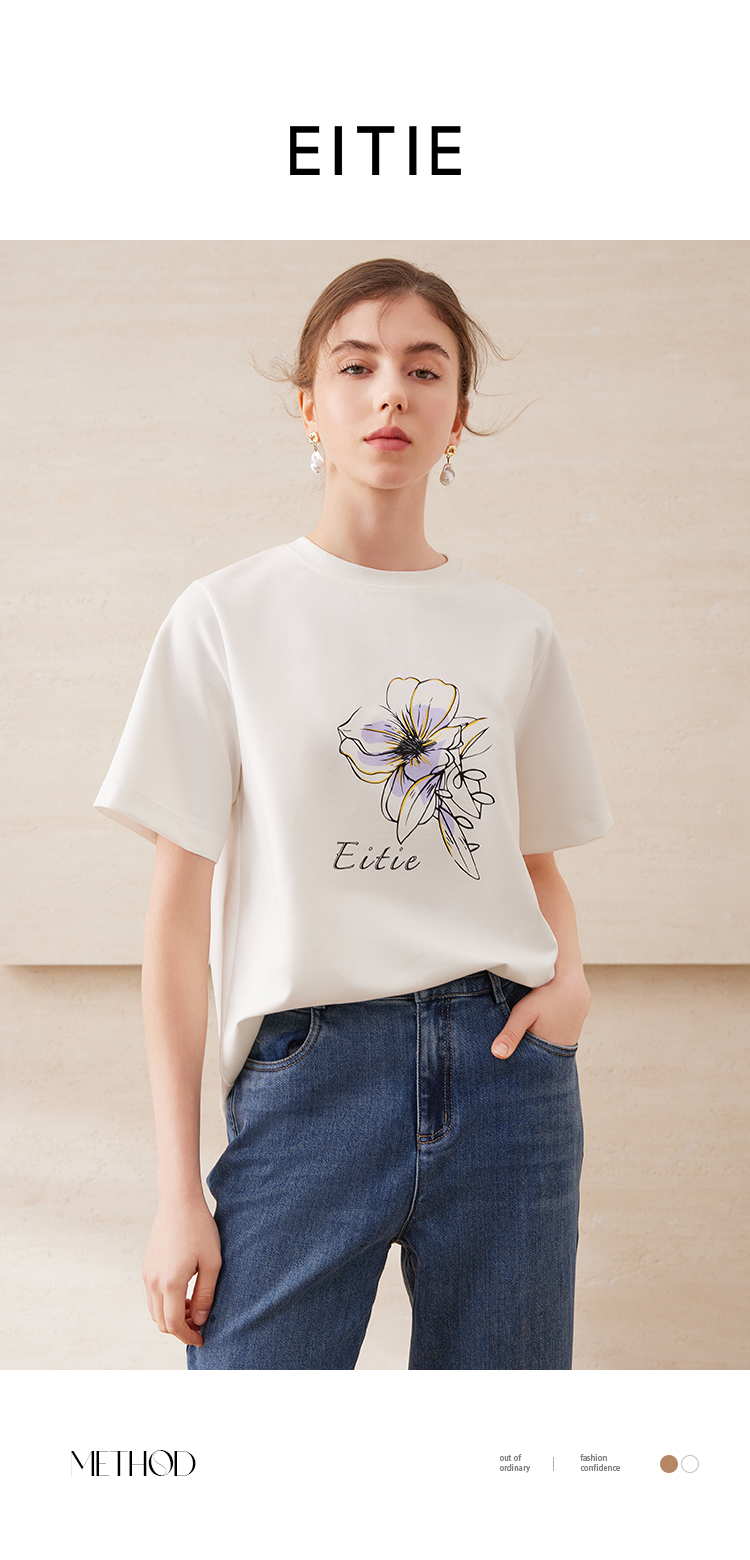 EITIE爱特爱夏日舒适休闲风花朵印花宽松短袖T恤年夏季新款B2502602