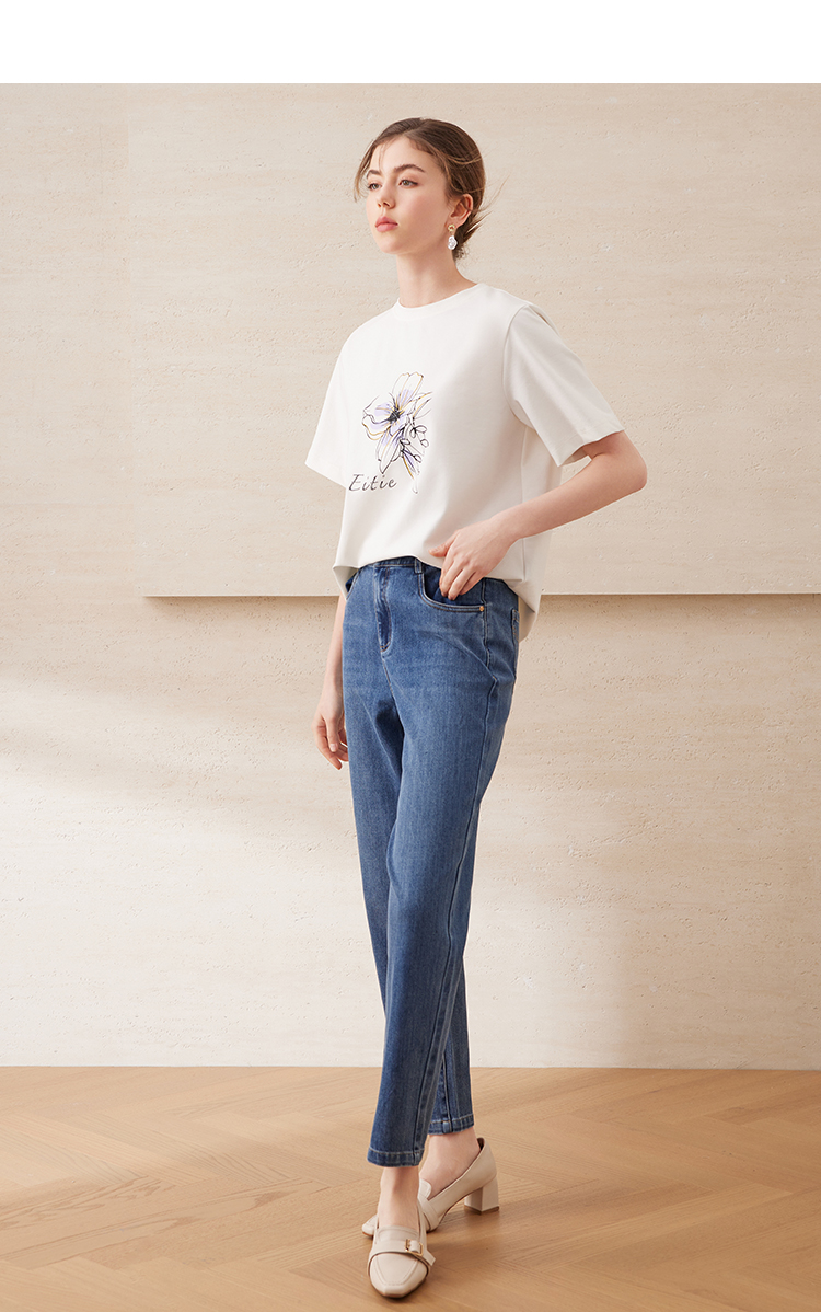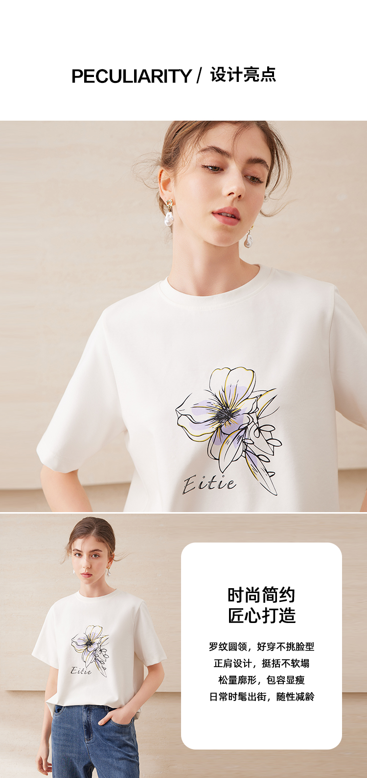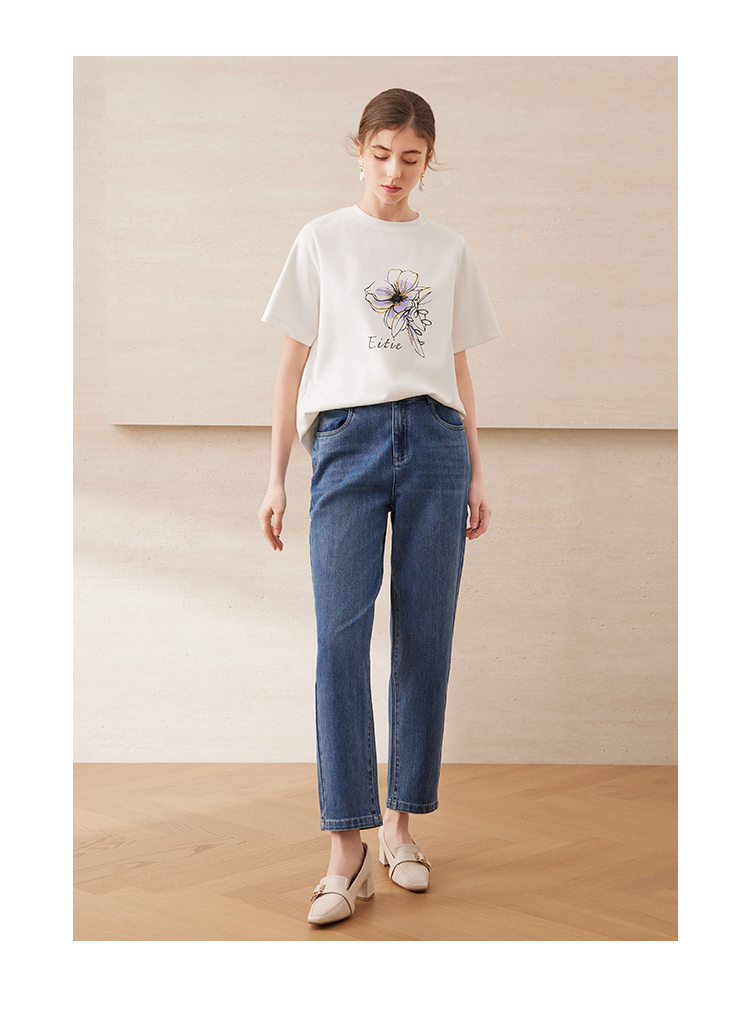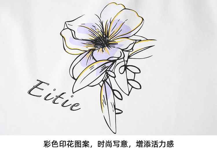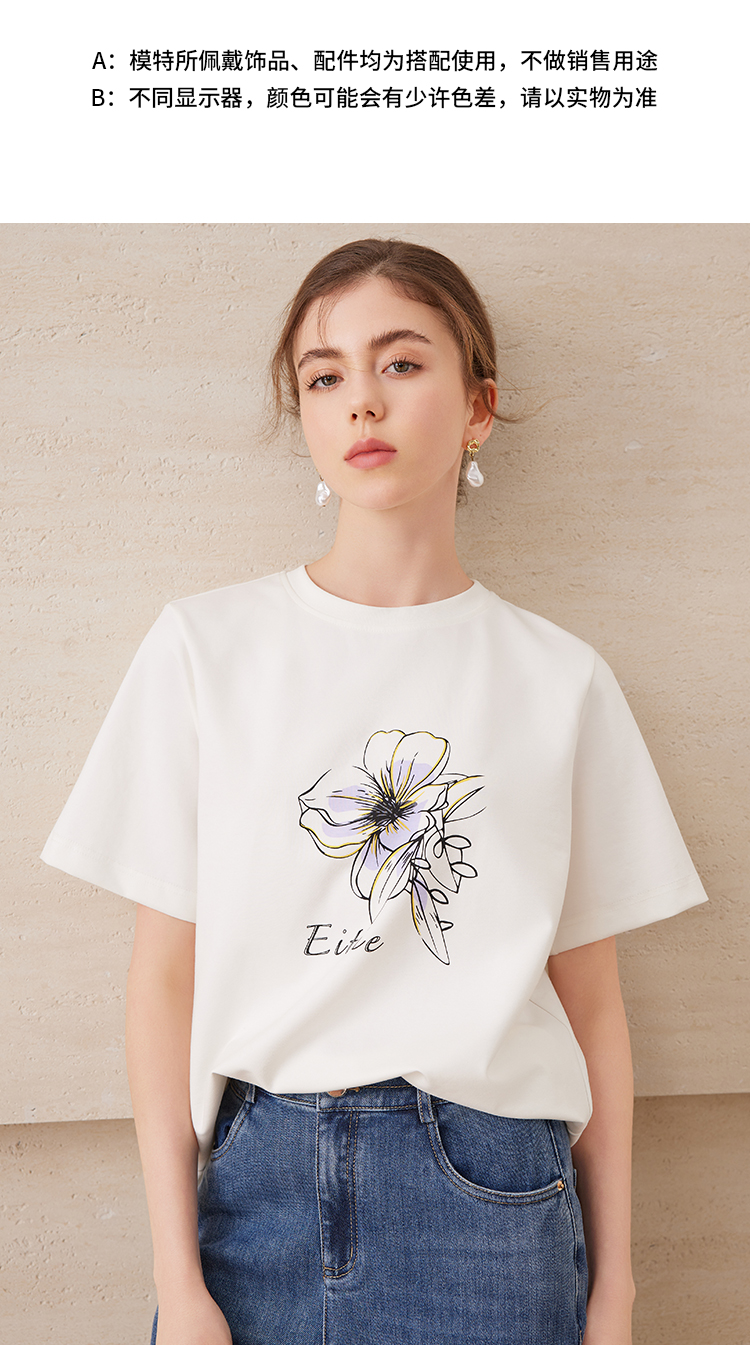 EITIE爱特爱夏日舒适休闲风花朵印花宽松短袖T恤年夏季新款B2502602