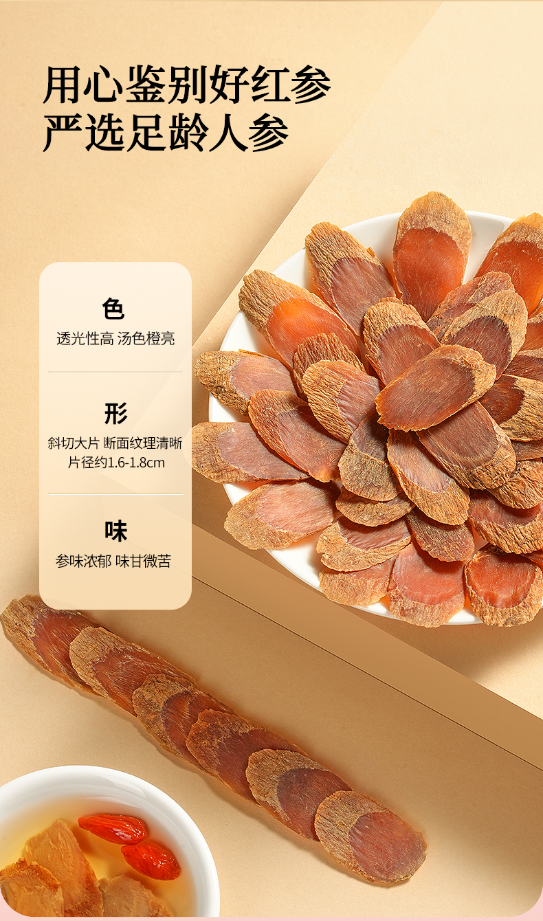【正宗同仁堂品牌】北京同仁堂 青源堂 干制红参片140克(35克X4)精选主根切大片 SY