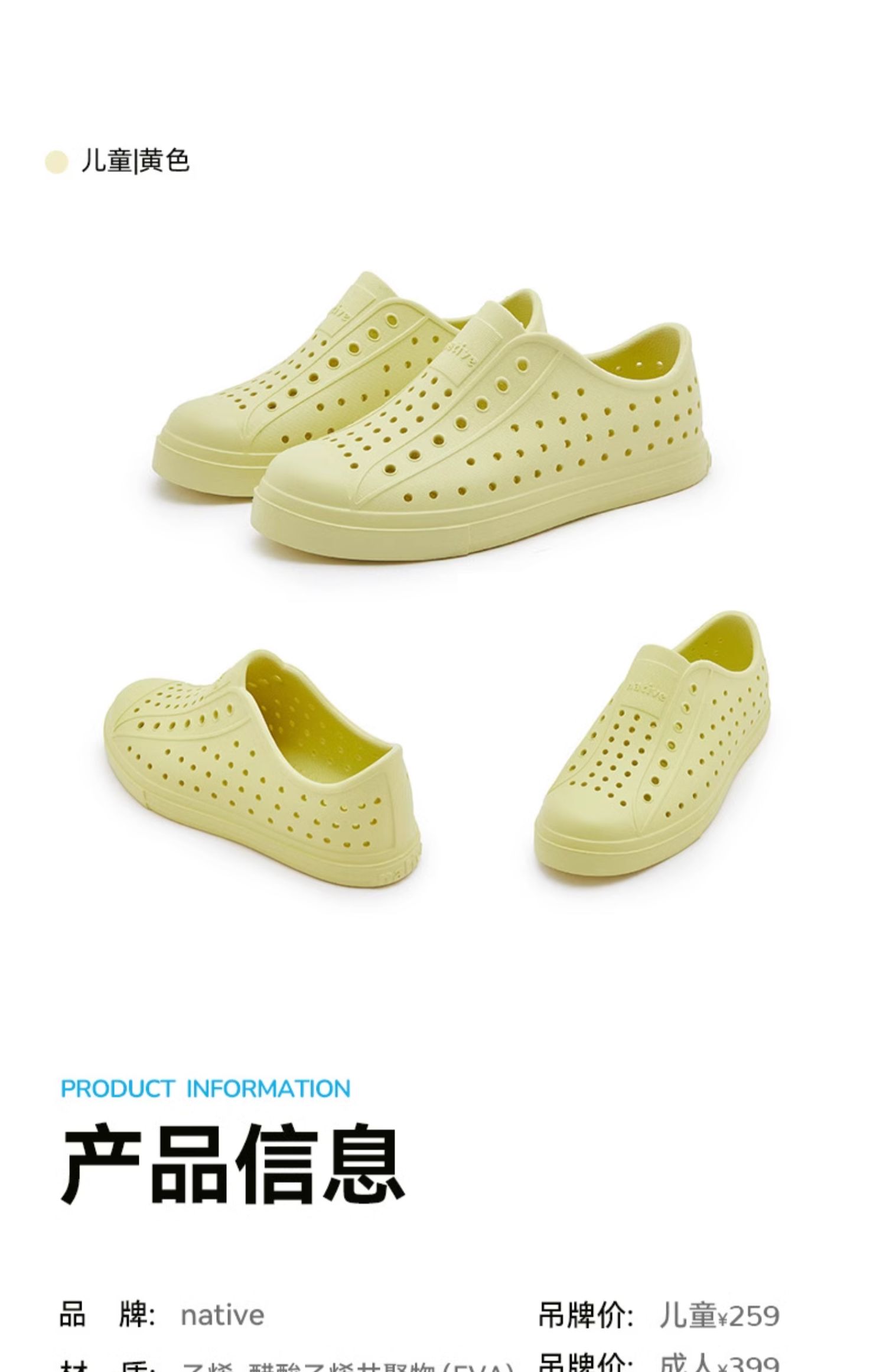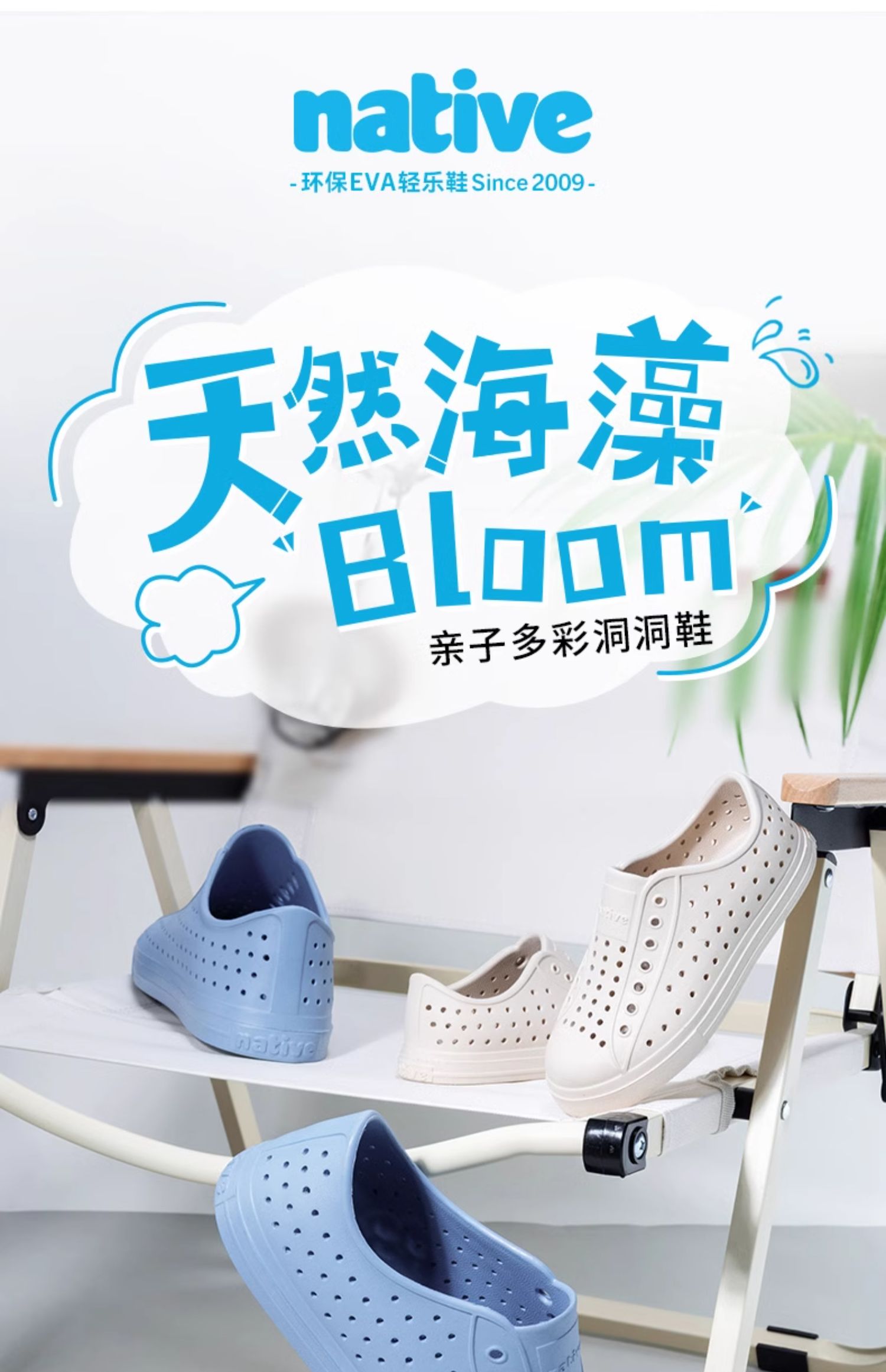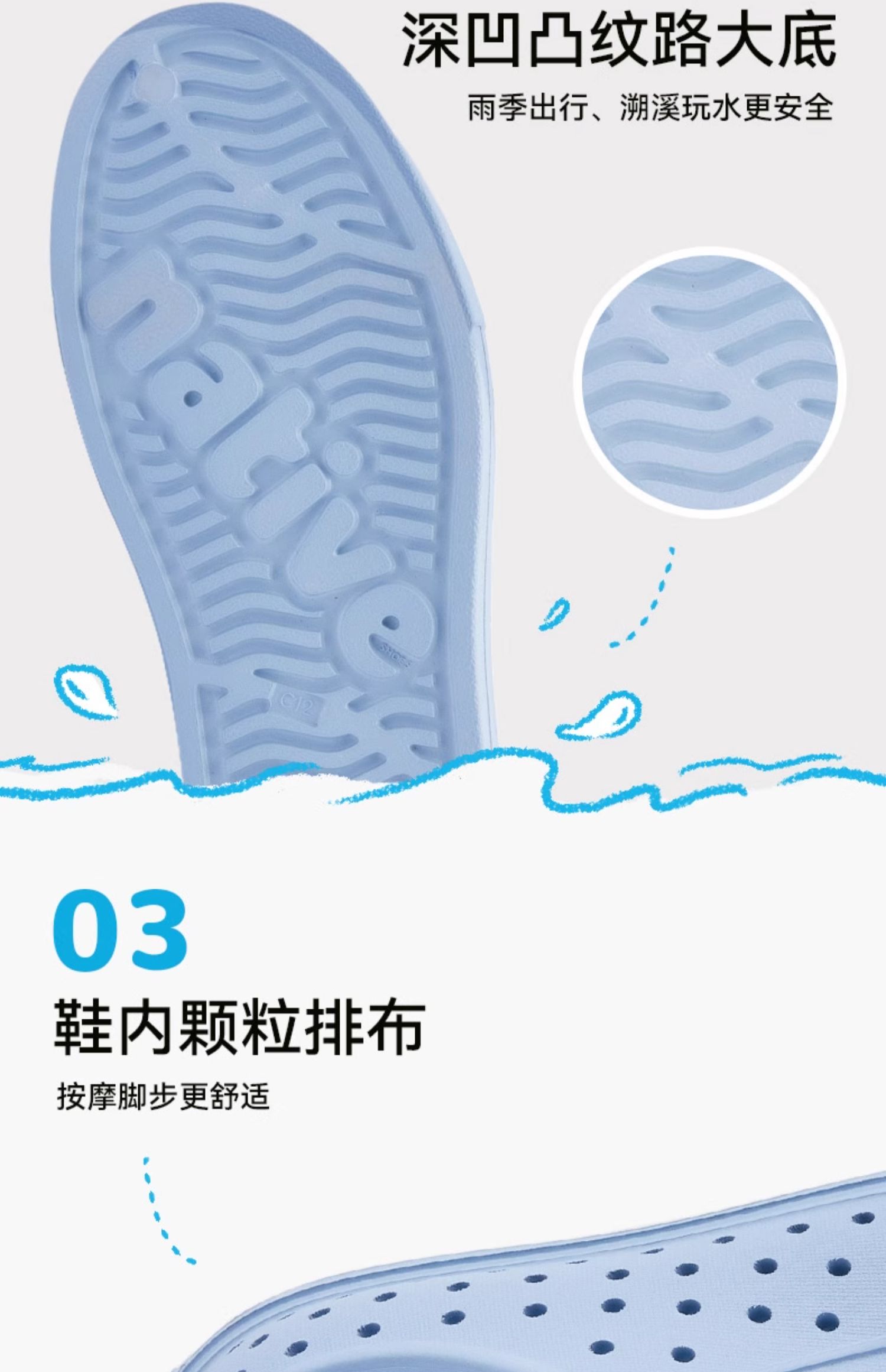 native海藻亲子洞洞鞋儿童男女童夏一体成型沙滩凉鞋雨鞋