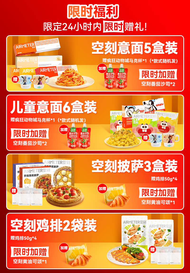 LL空刻上新福利⚡鸡排&披萨🍕新品来袭,下单还有赠品! 另外89元5盒直面!现在下单送疯狂动物城联名马克杯!还有24小时限时加赠!