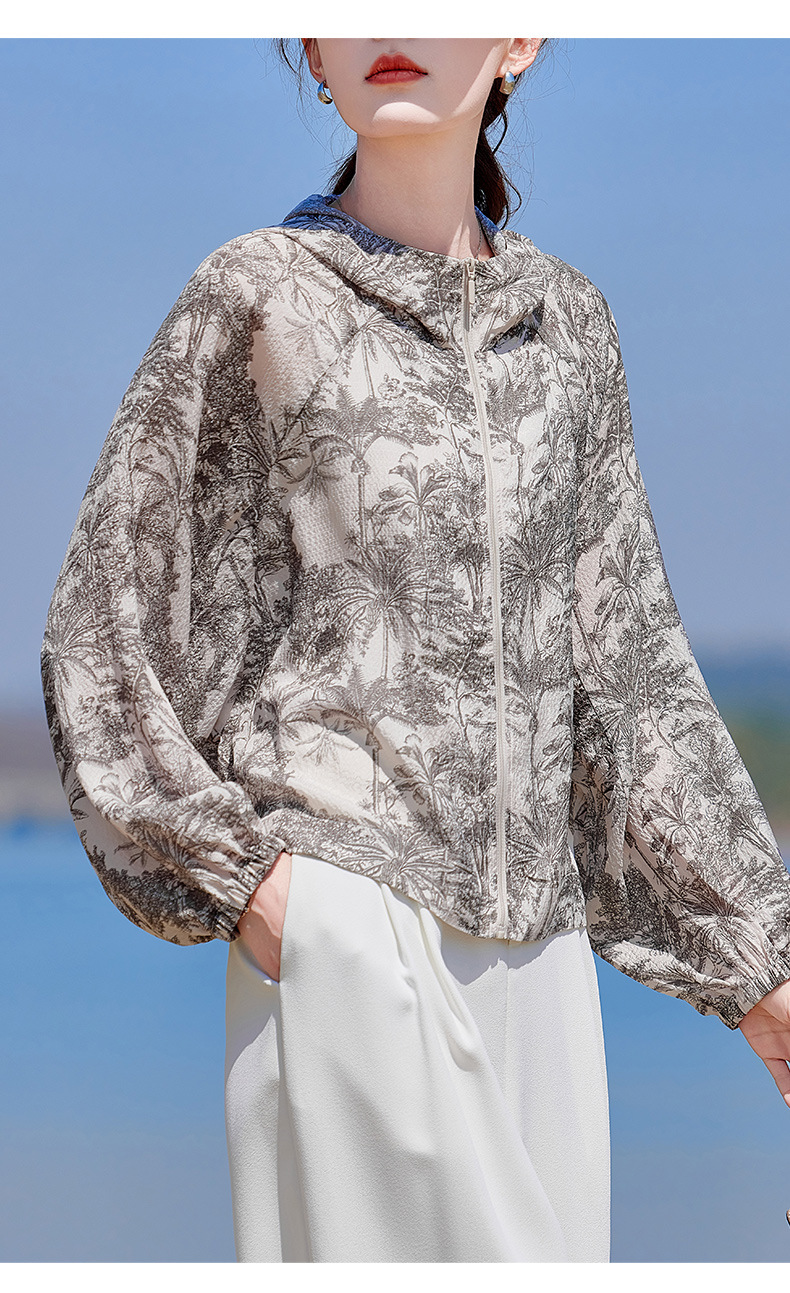 丁摩时尚连帽双绉真丝上衣女长袖新款轻薄款桑蚕丝防晒衣外套AL3011Z