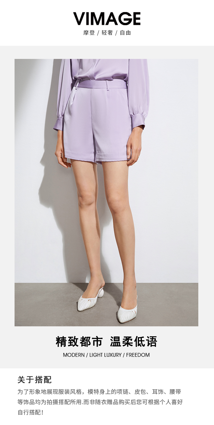 VIMAGE纬漫纪夏季新款通勤百搭显瘦纯色简约短裤女裤VA2105113