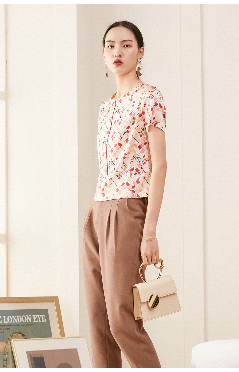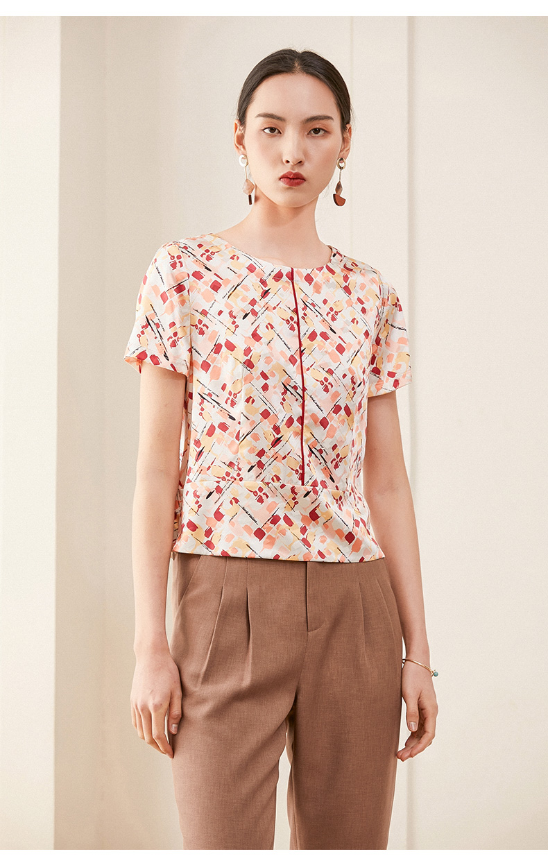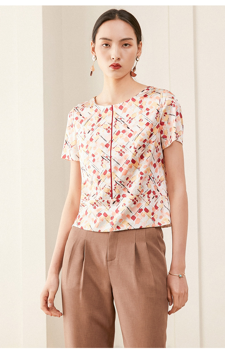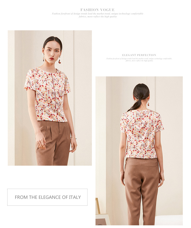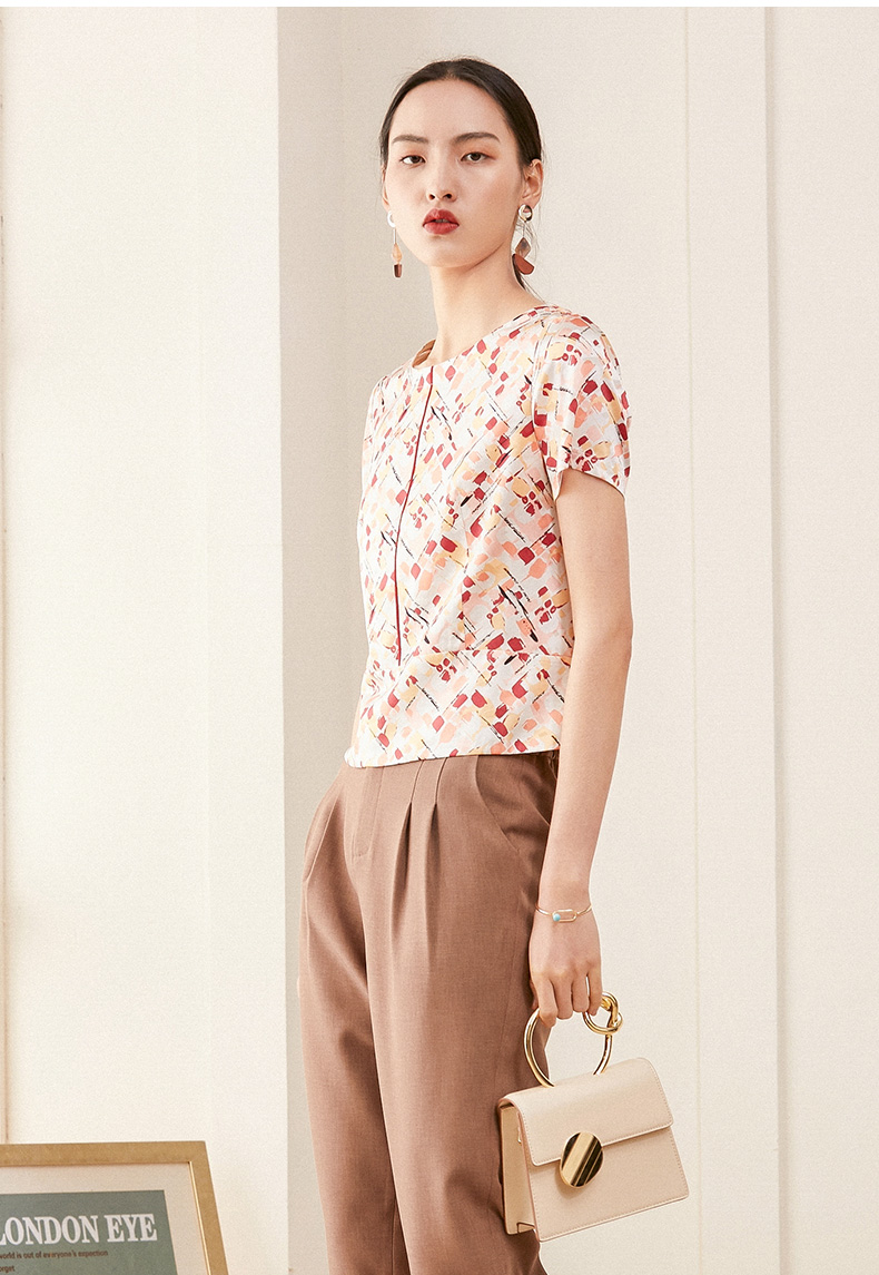 乔万尼春夏时尚减龄19mm真丝几何印花单上衣小衫ES2C151