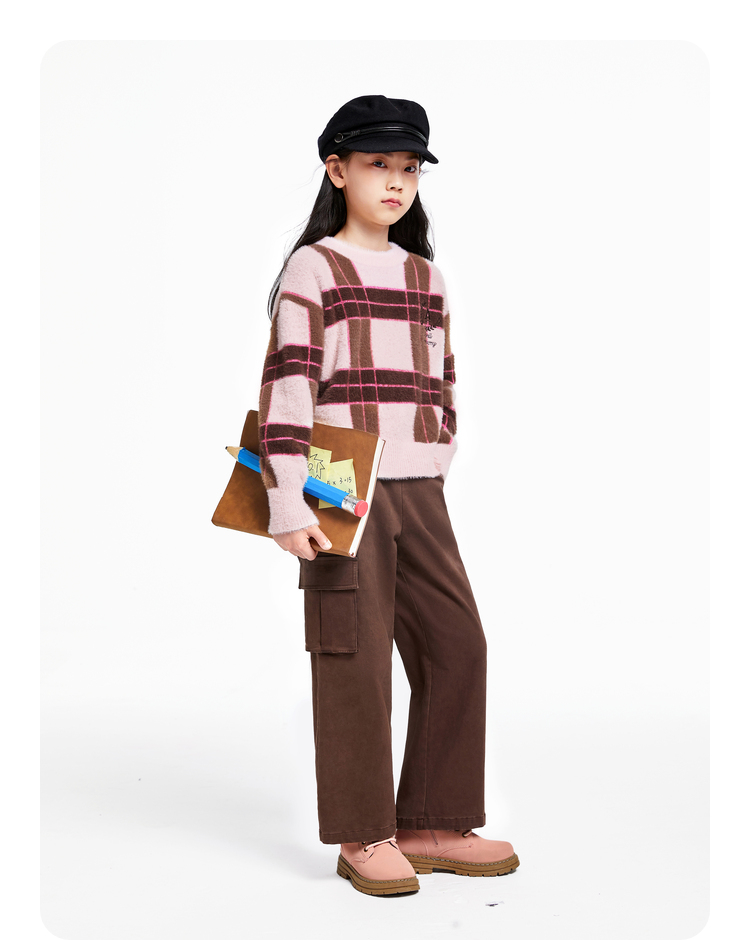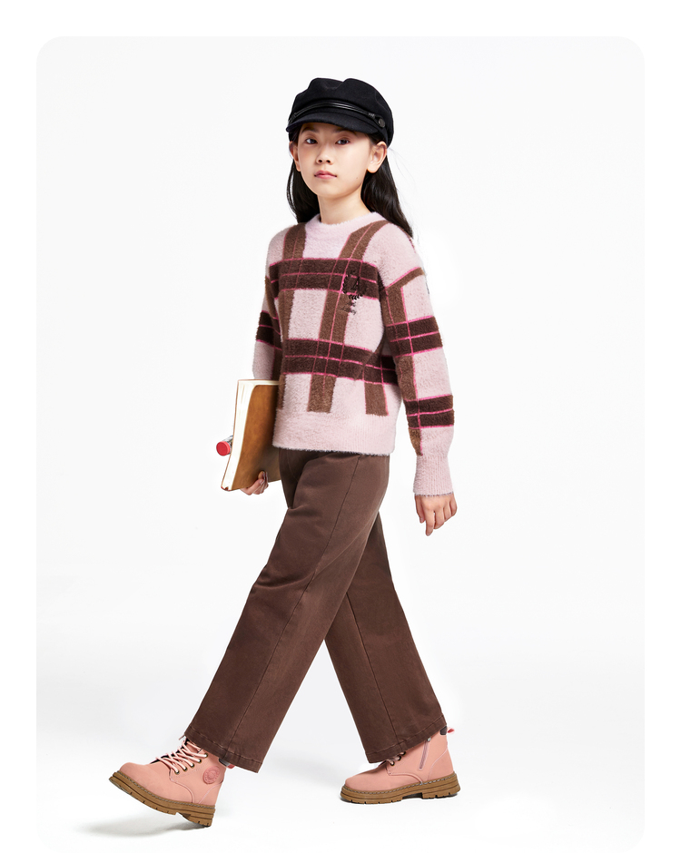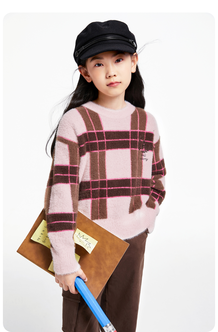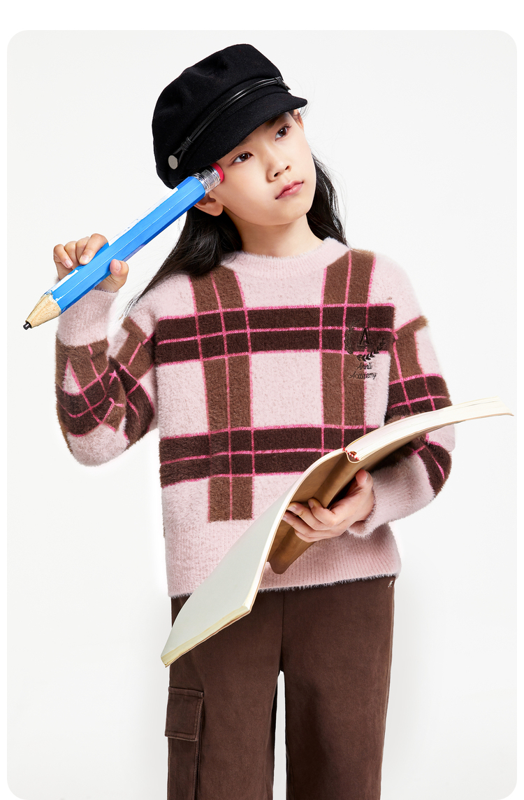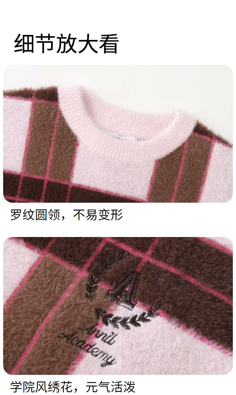女童圆领长袖针织衫冬季新款安奈儿童装EG444512