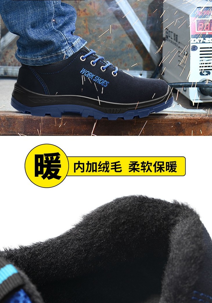 劳保鞋男冬季加绒棉鞋防砸钢包头防刺穿舒适耐油耐酸碱实心底反绒皮安全工作鞋 【反绒皮】冬季耐磨加绒款