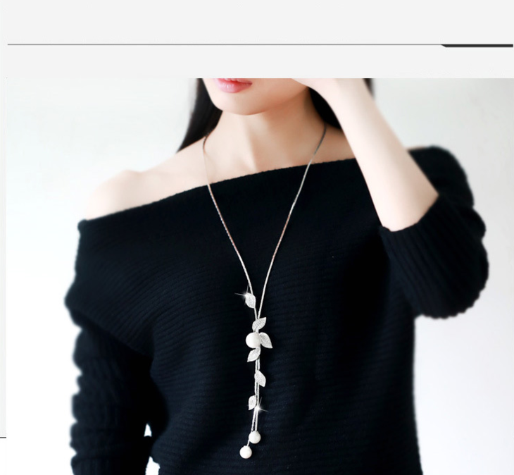 时尚韩国饰品 韩版情叶片片毛衣链 项饰服装挂件YH237