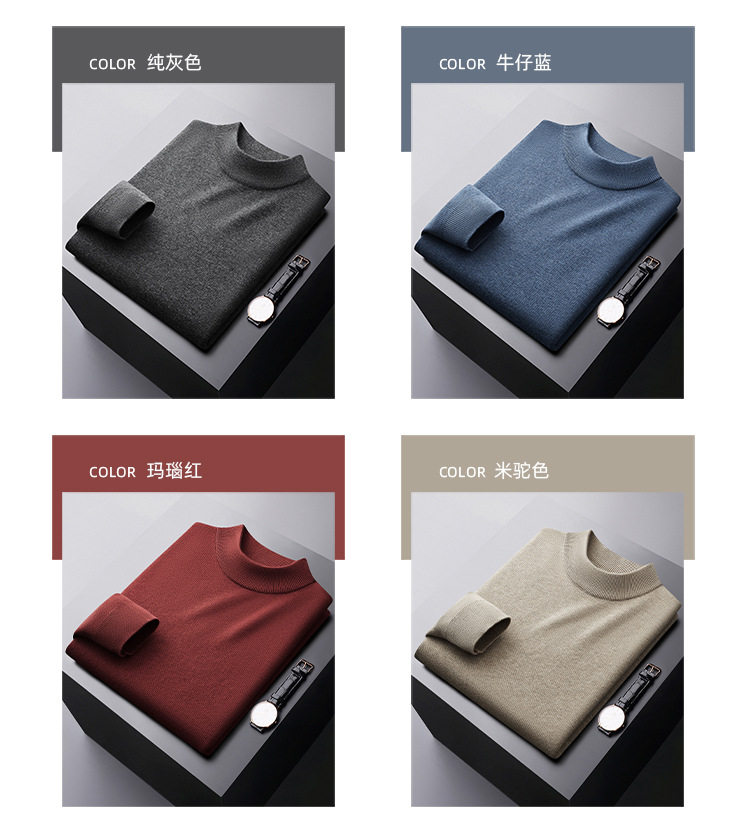 秋冬新品半高领保暖加厚羊毛衫打底中年男T恤净色内搭男士打底衫 PSL-PSLA811