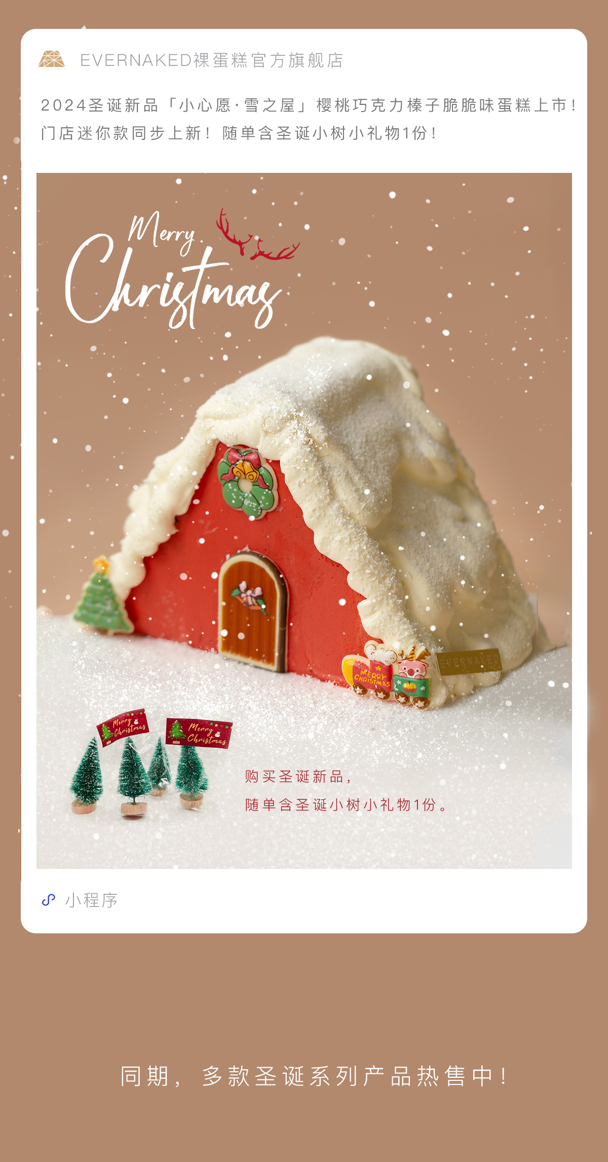 2024圣诞新品「小心愿 · 雪之屋」樱桃巧克力榛子脆脆味蛋糕|随单含圣诞小树小礼物1份!