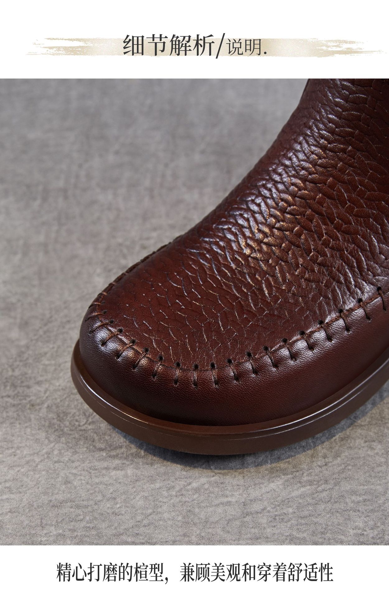 ZM 258679复古真皮压花缝制平跟软底骑士靴中筒靴 商品图4