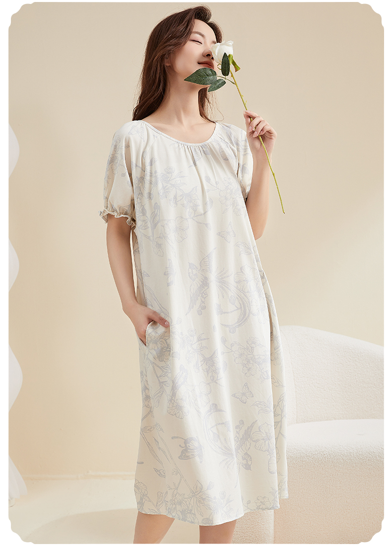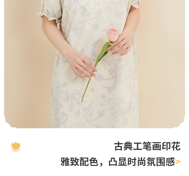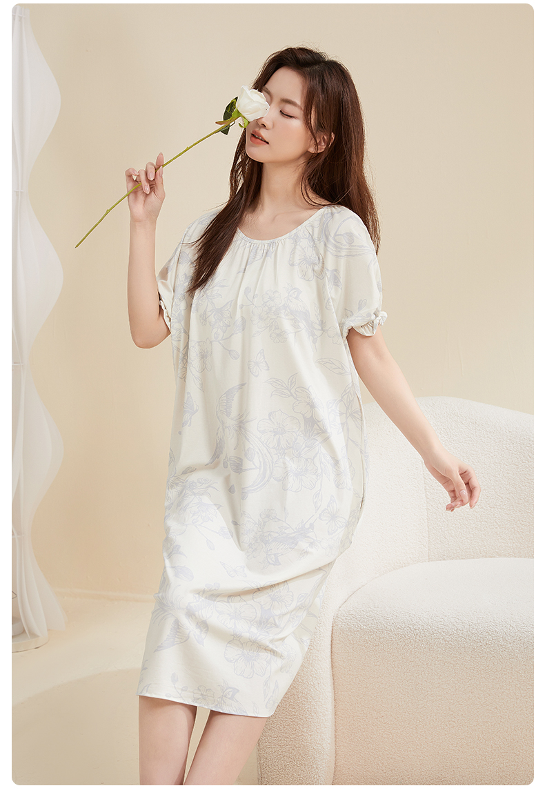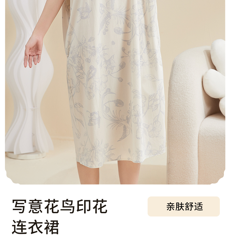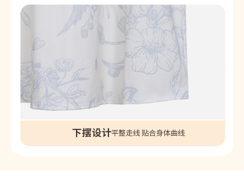 贝佳人新款棉家居服睡裙舒适花鸟印花短袖连衣裙睡衣女BW522503