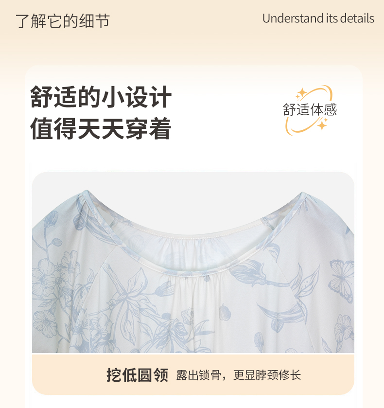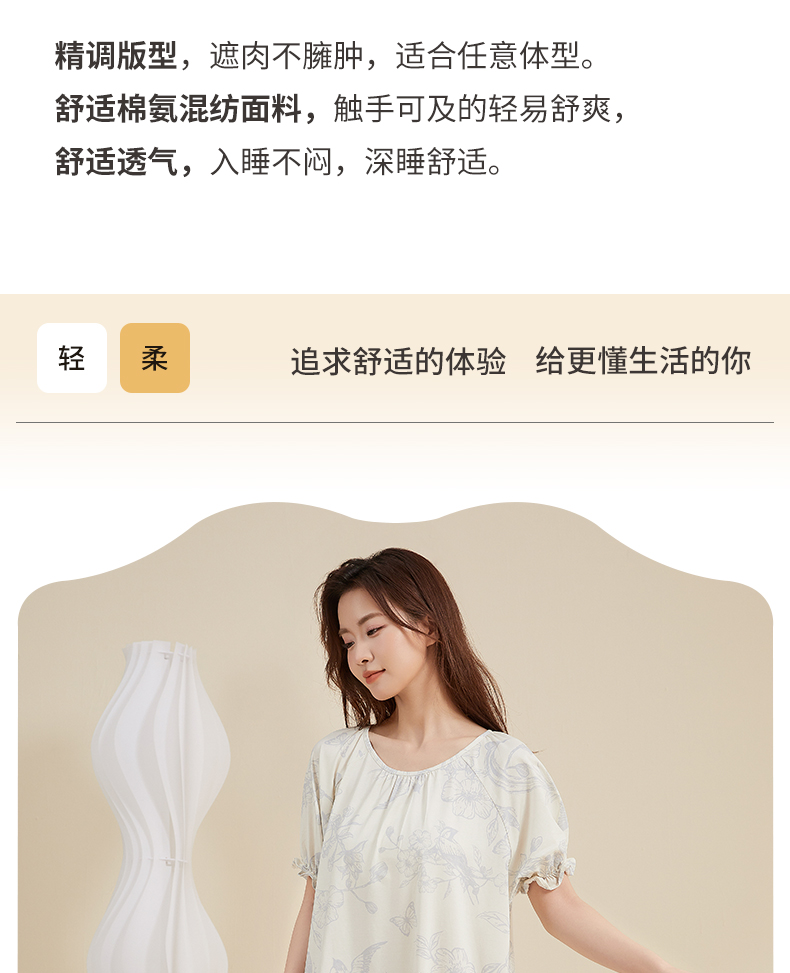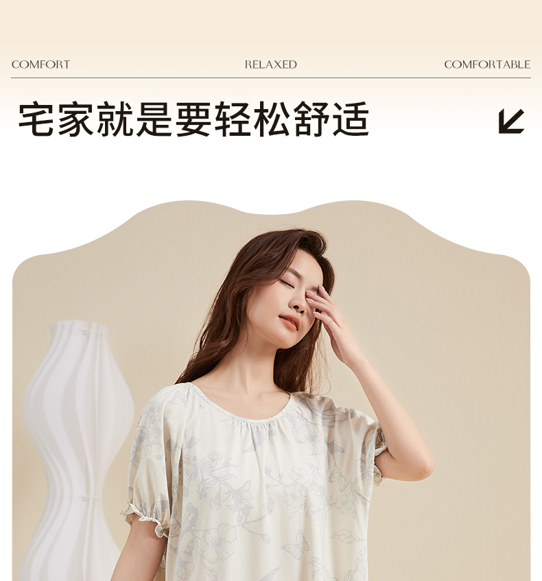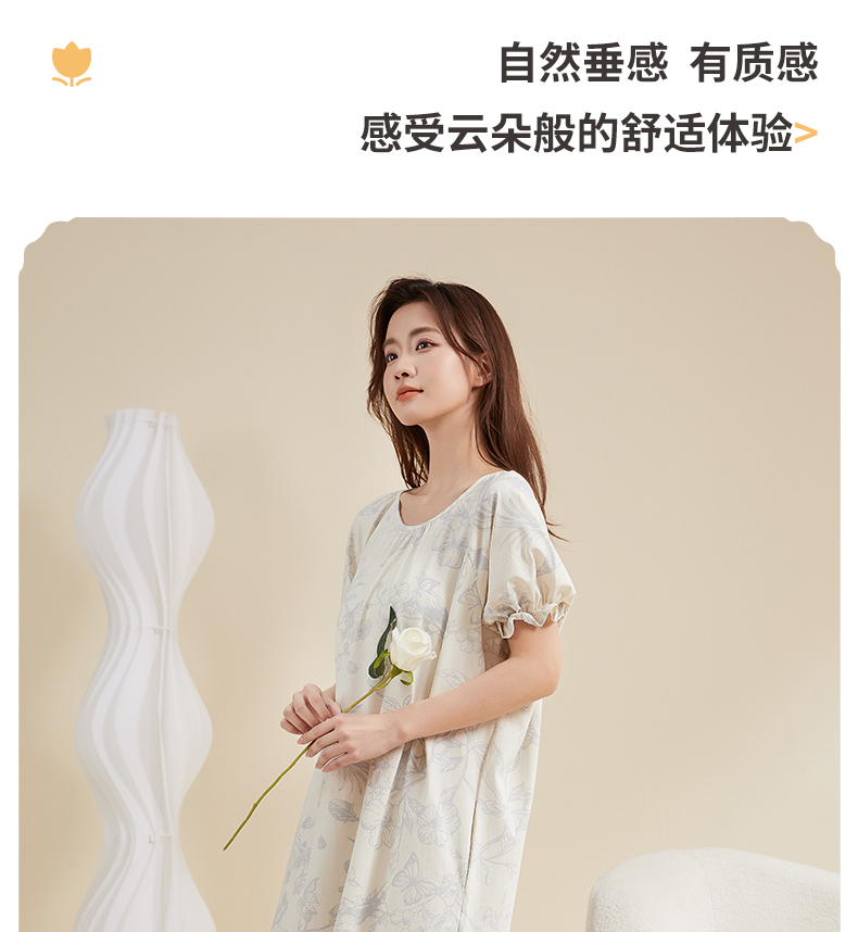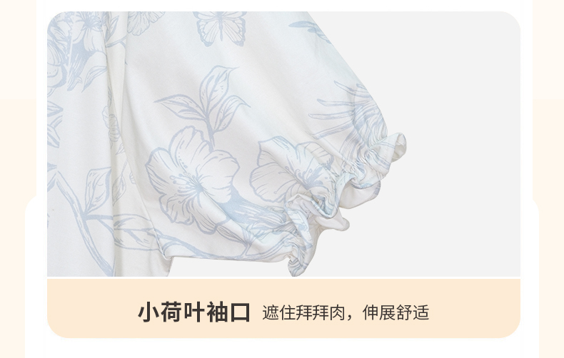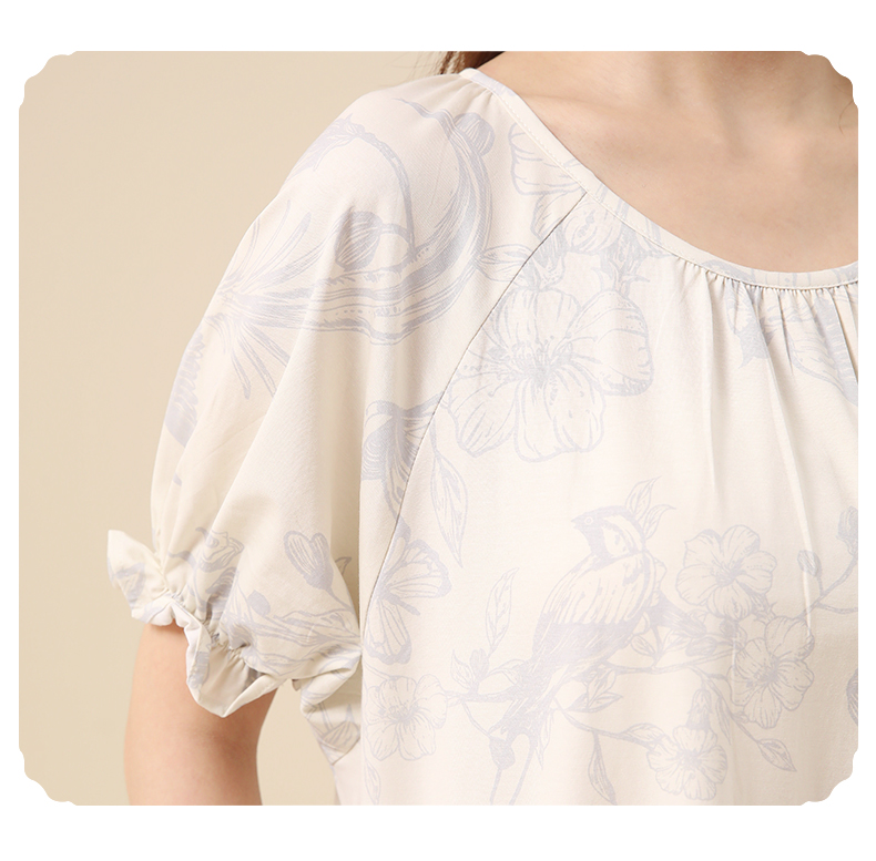 贝佳人新款棉家居服睡裙舒适花鸟印花短袖连衣裙睡衣女BW522503