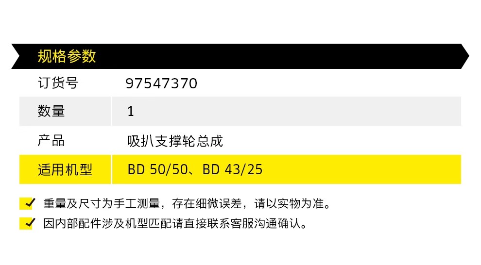 卡赫配件 洗地机配件耗材吸扒支撑轮总成 适用BD 50/50 97547370