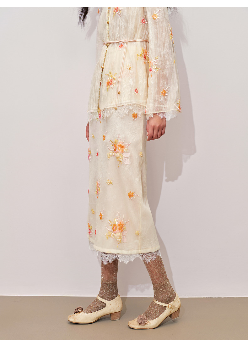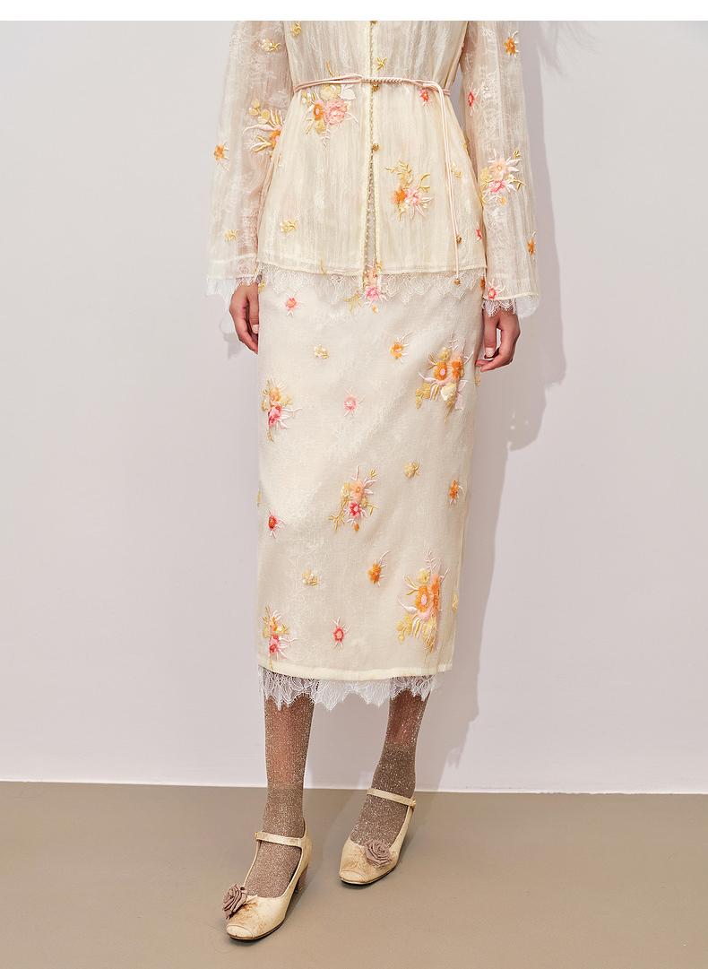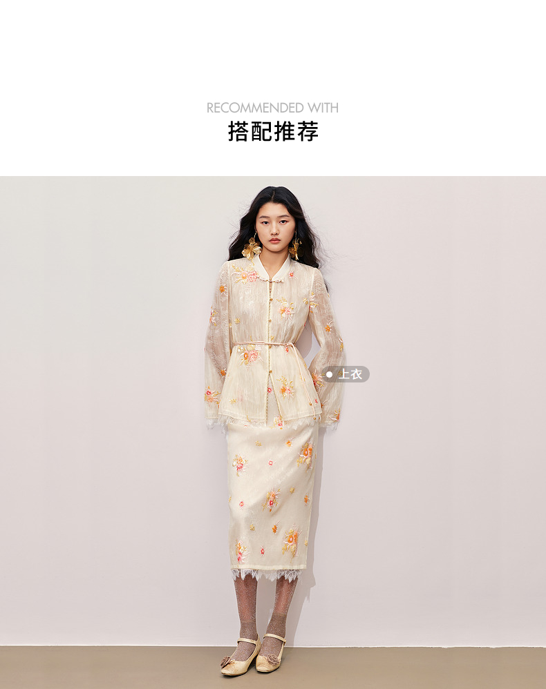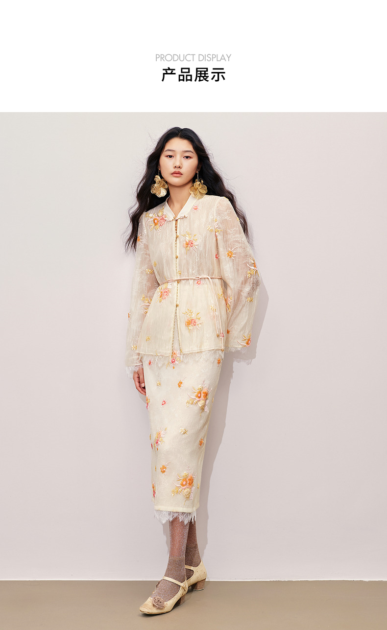 【商场同款】MAXRIENY中式甜美欧根纱半裙24秋冬新款重工绣花长裙(货号:MC85SK330)