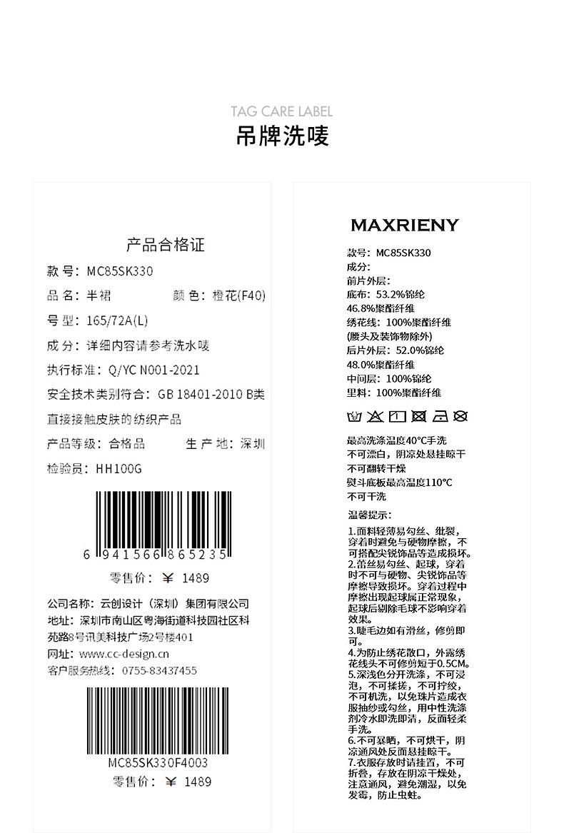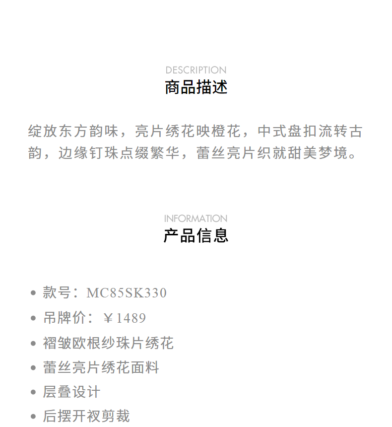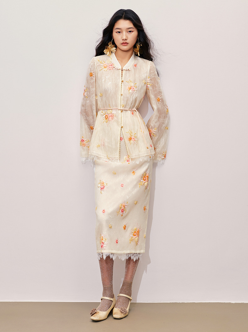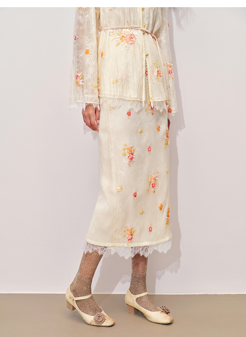 【商场同款】MAXRIENY中式甜美欧根纱半裙24秋冬新款重工绣花长裙(货号:MC85SK330)