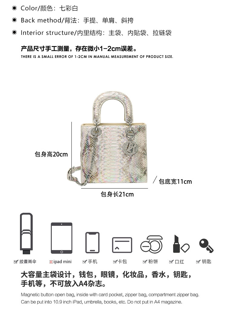 丁摩 戴妃包女新款蛇纹欧美时尚高级感手提包斜挎小包包5ZF-5192