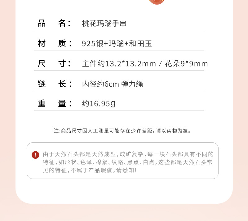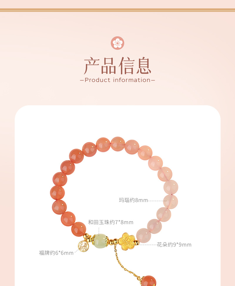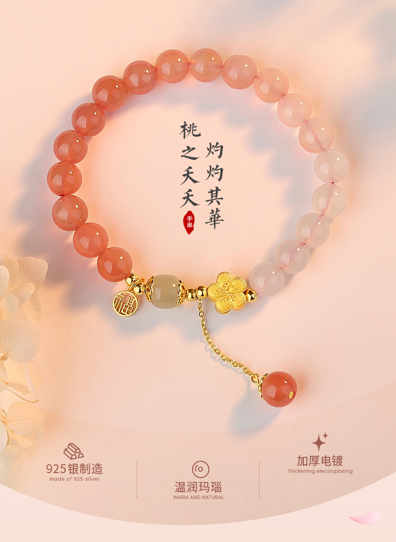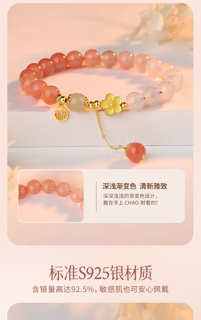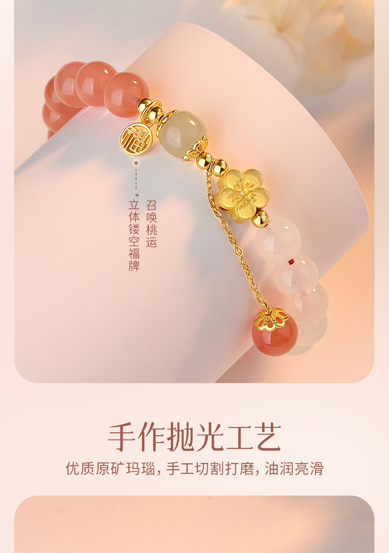 渐变玛瑙手串,小众设计桃花手链DQ0466S