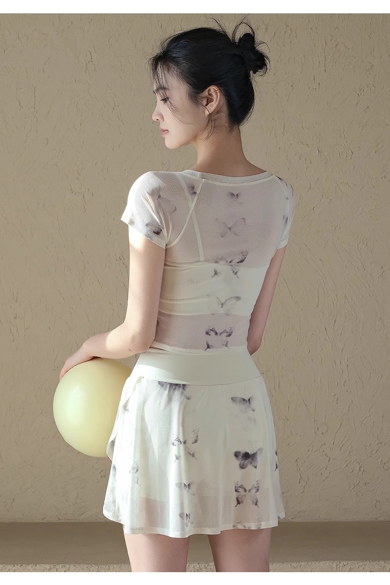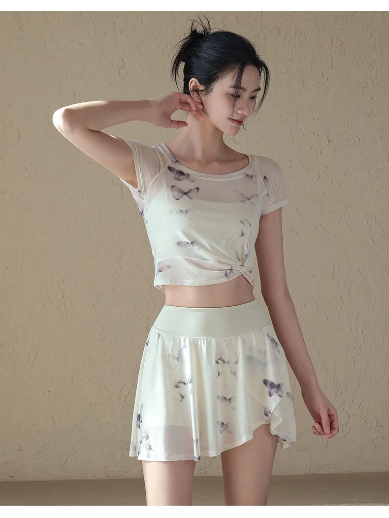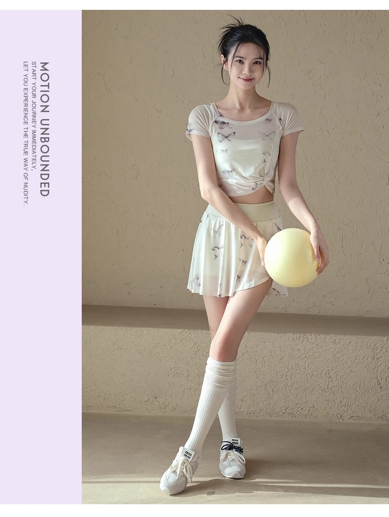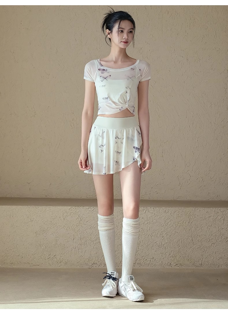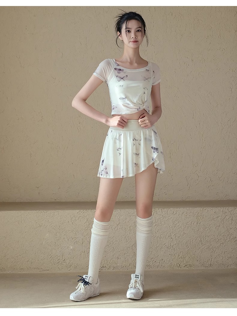 跃牌【禅语梵心】一体式高腰网纱跑步运动短裙女假两件防走光网球裙DQ3132