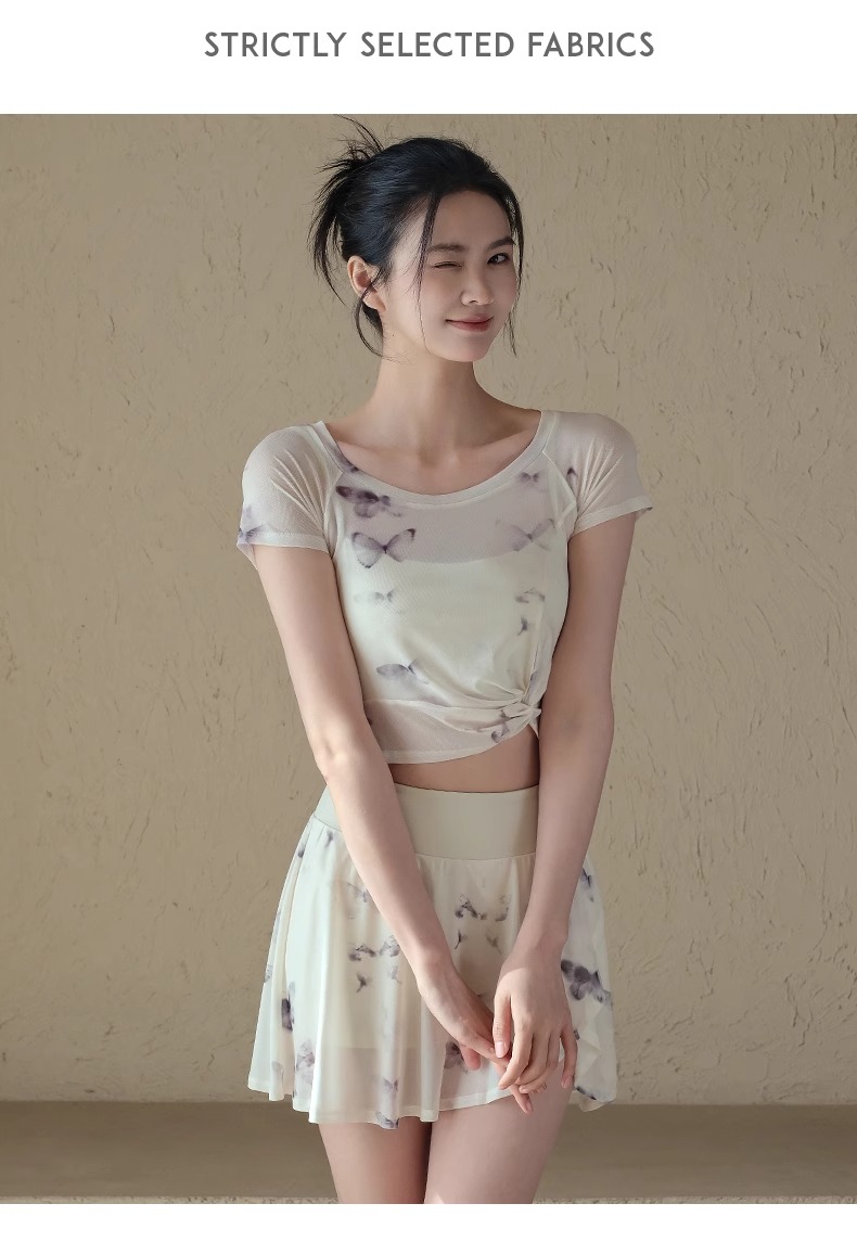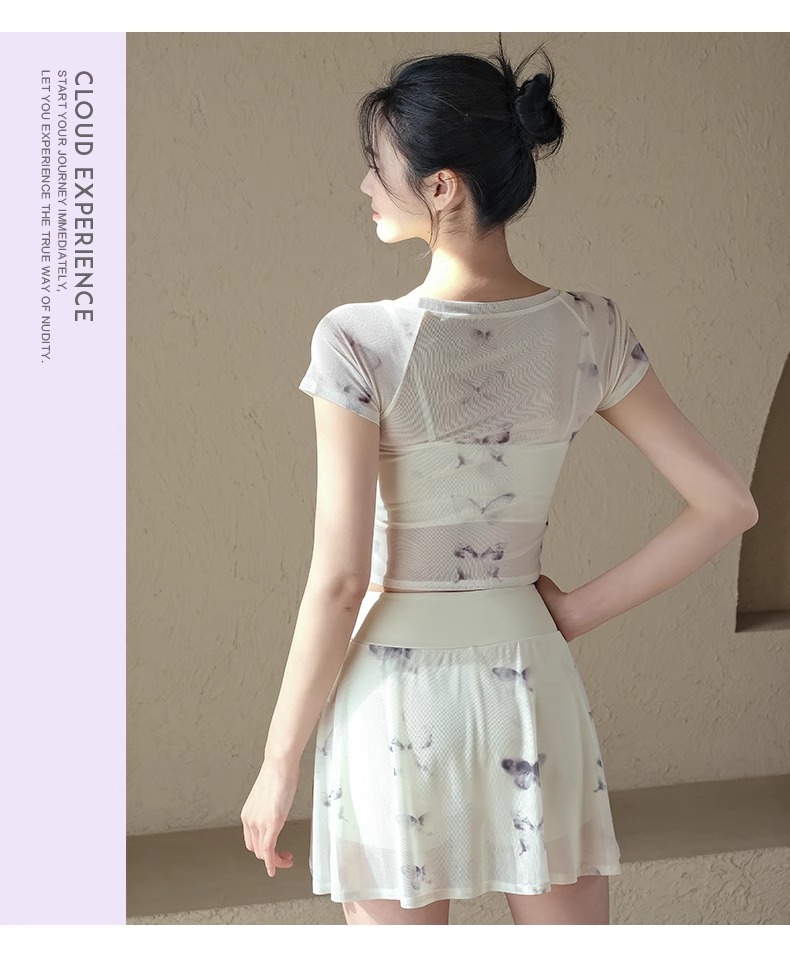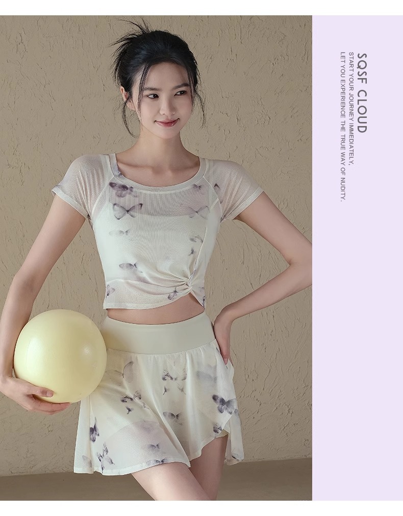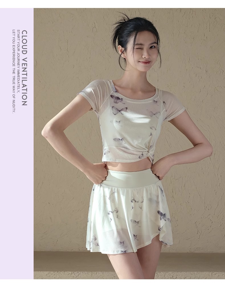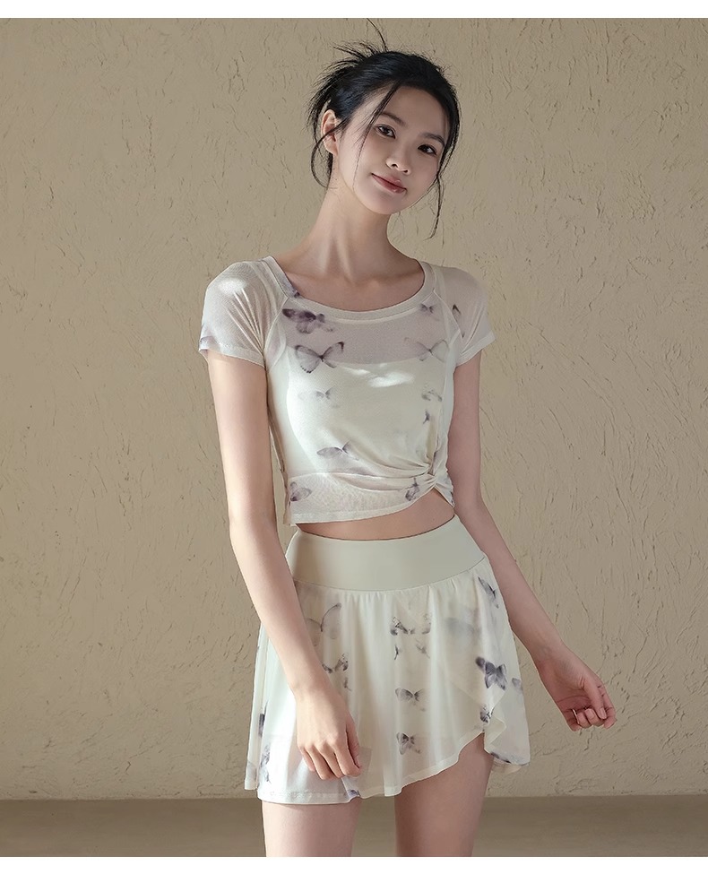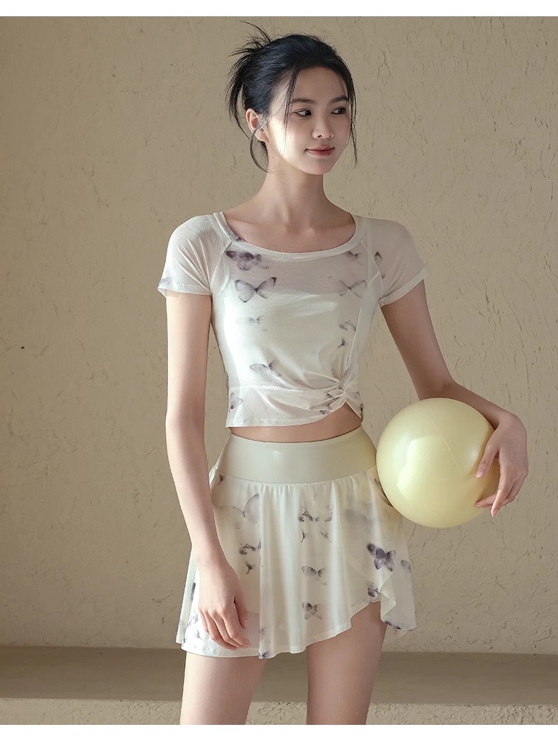 跃牌【禅语梵心】一体式高腰网纱跑步运动短裙女假两件防走光网球裙DQ3132