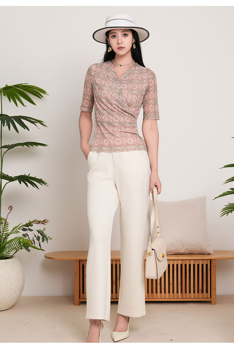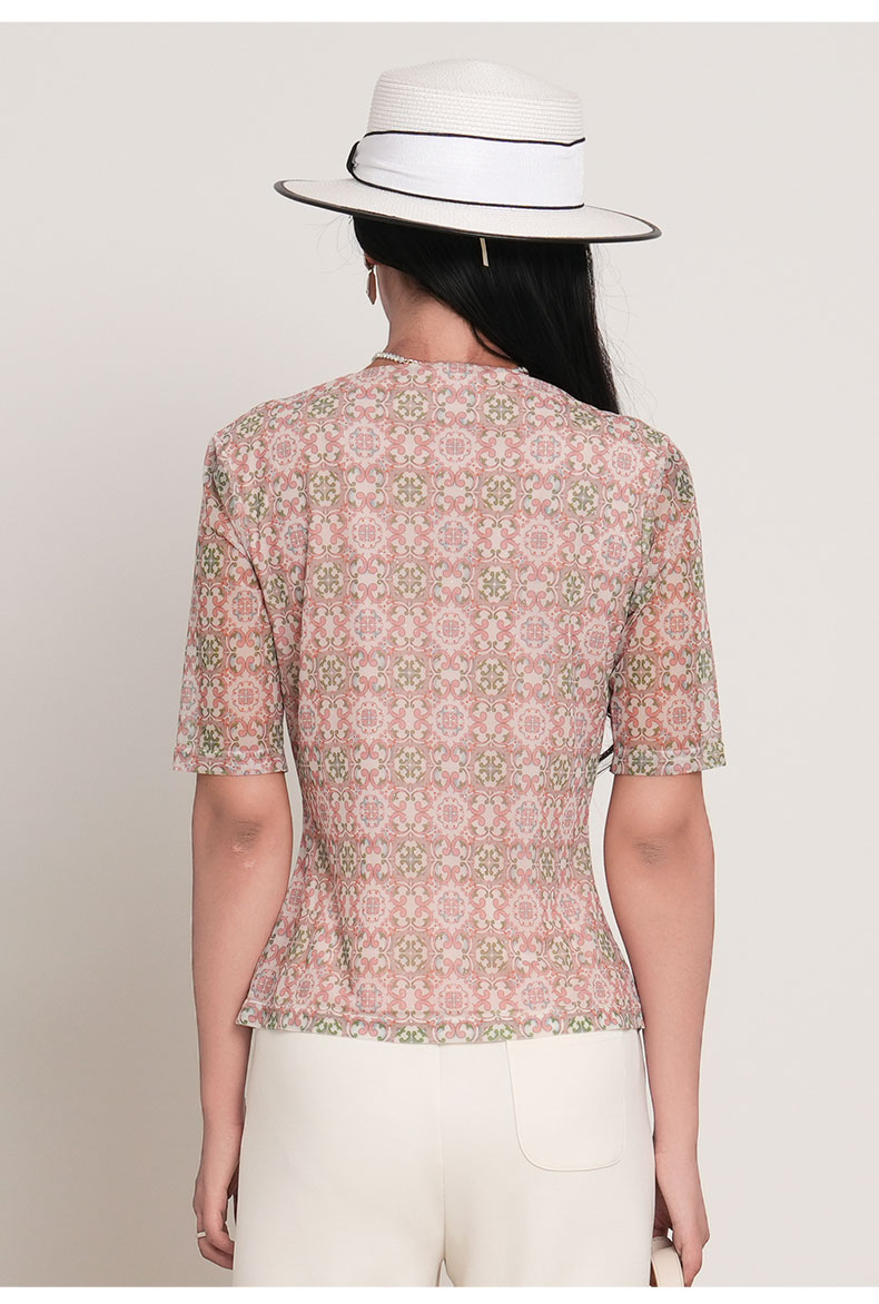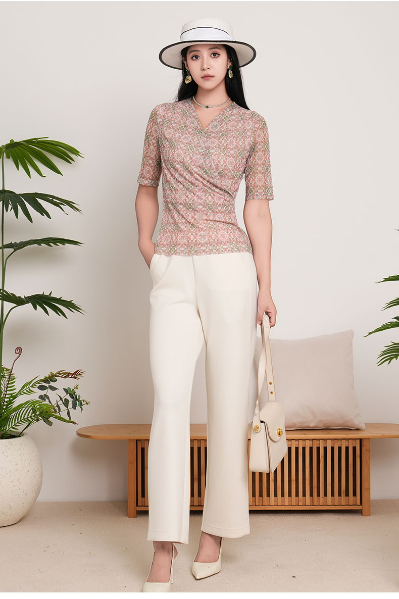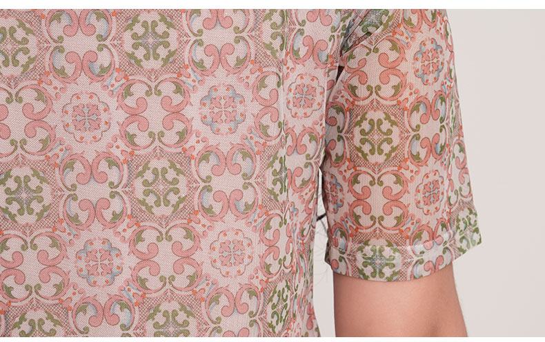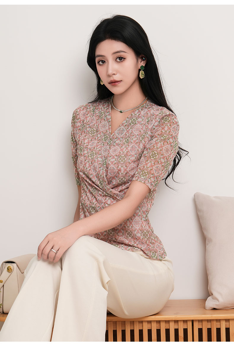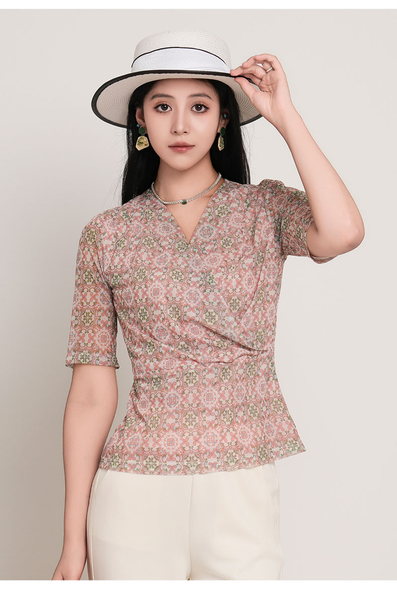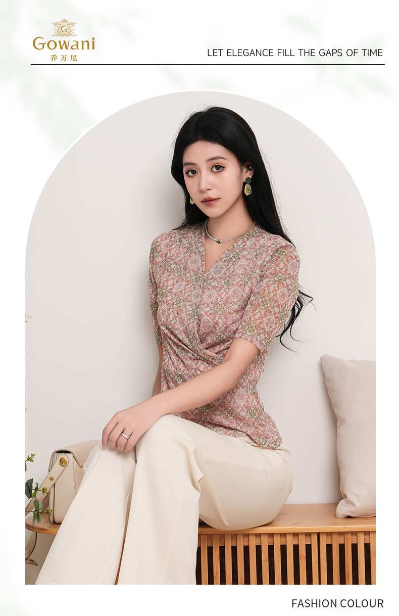 乔万尼新品法式交叠设计粉绿花纹衬衫ED2C470