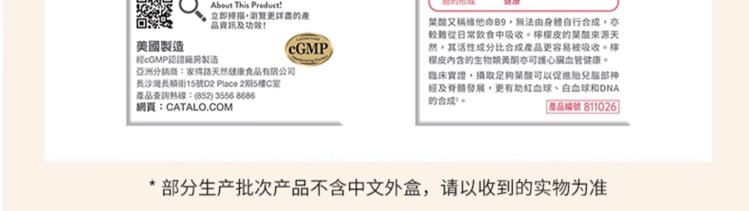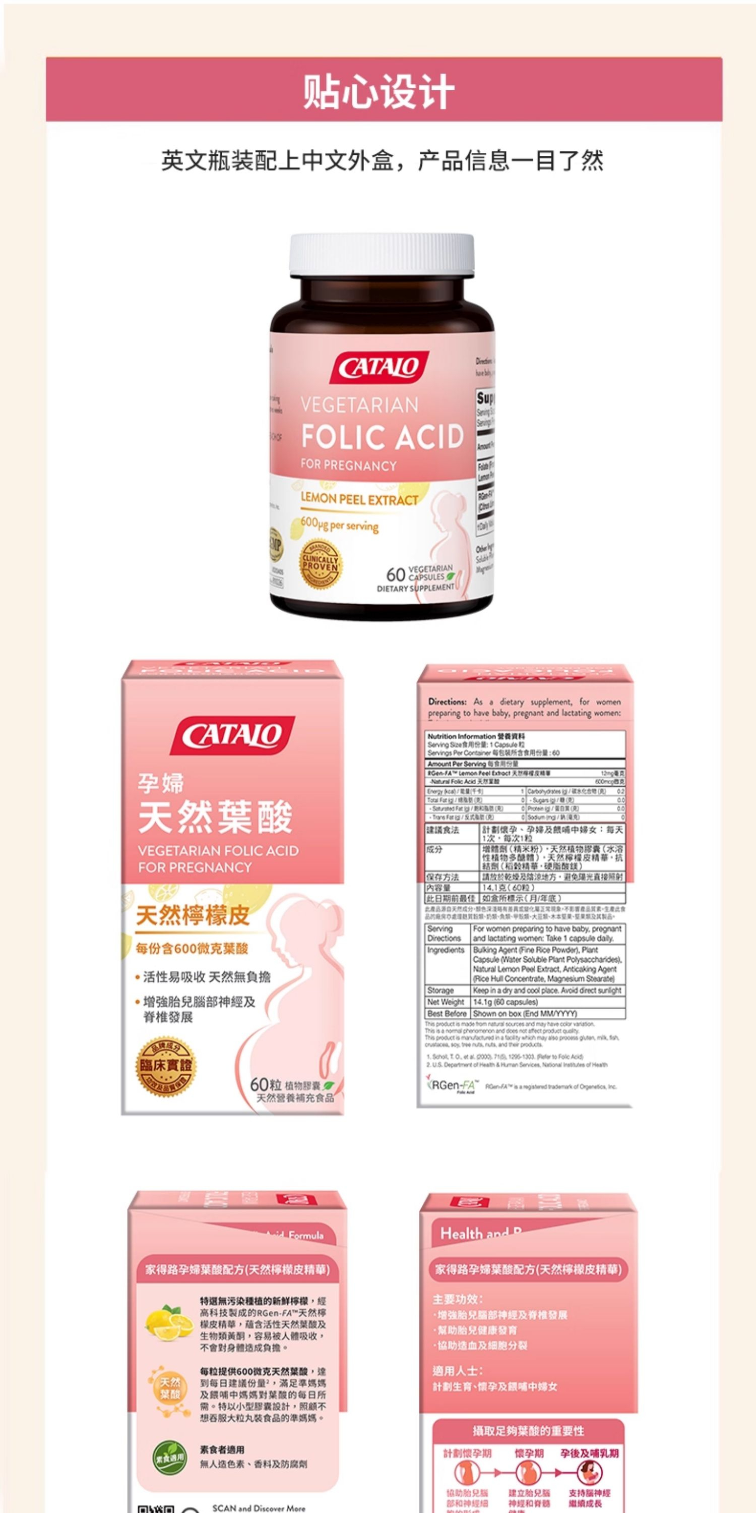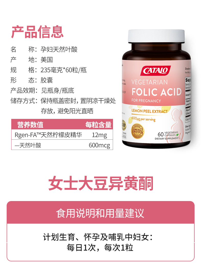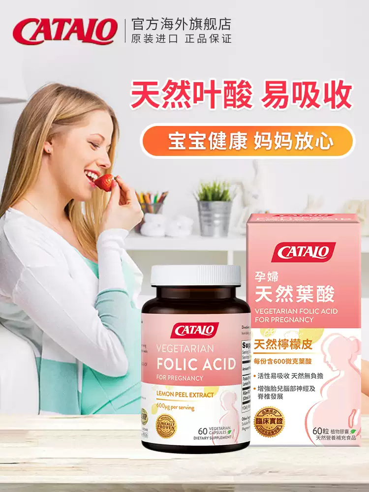 CATALO家得路孕妇天然叶酸有机柠檬备孕怀孕调理活性胶囊60粒 (2027.2)
