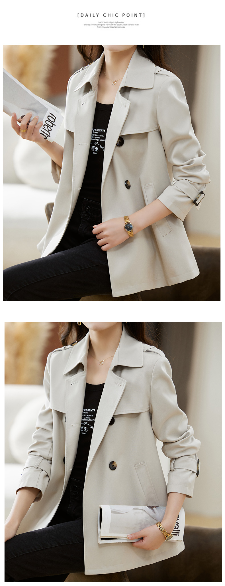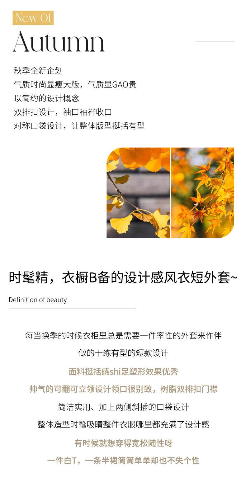 时尚韩版,宽松休闲短款风衣HR-ZYF2392
