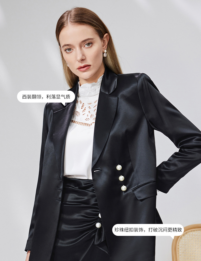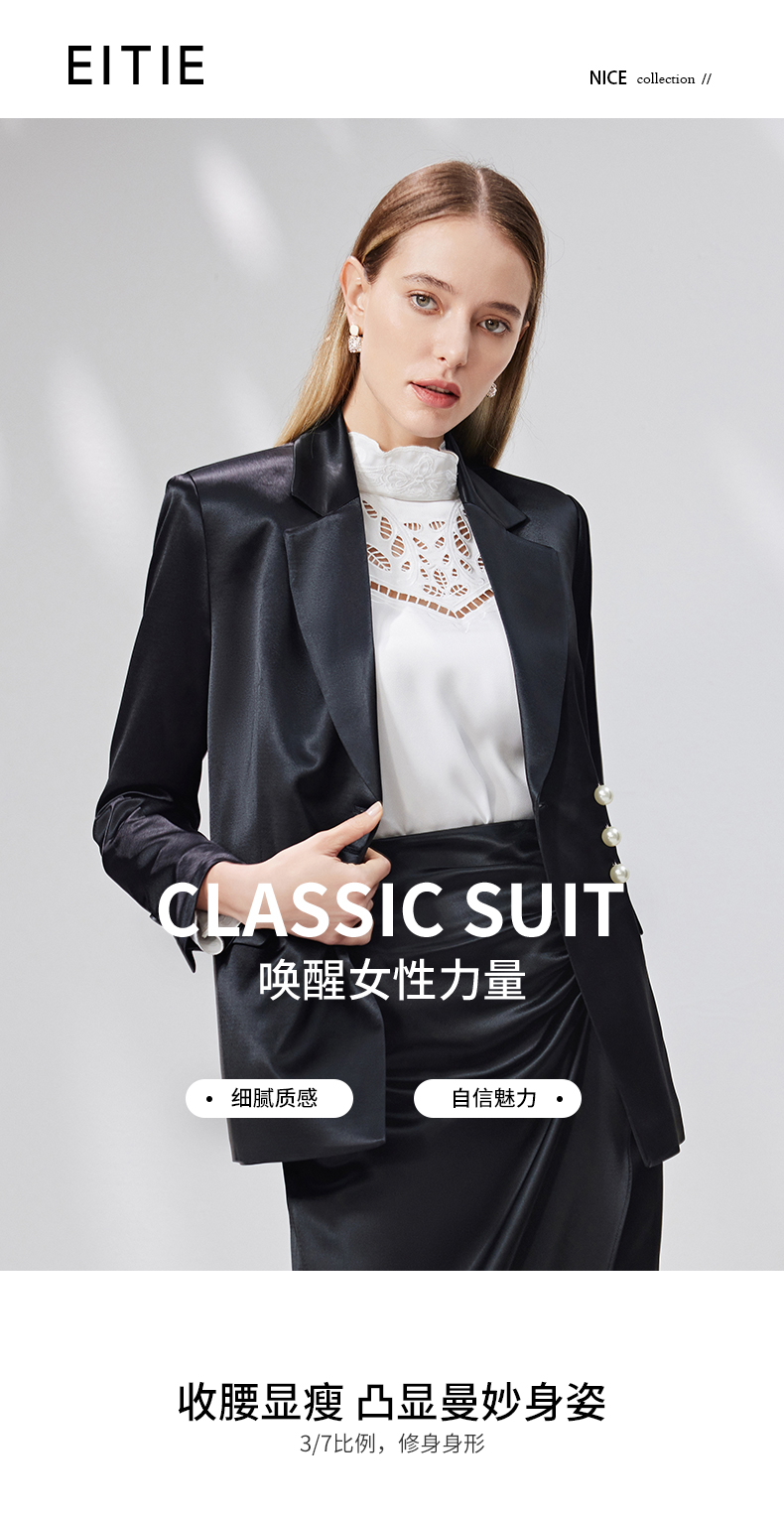 EITIE爱特爱秋季新款单排扣西装领收腰中长款显瘦外套7103805