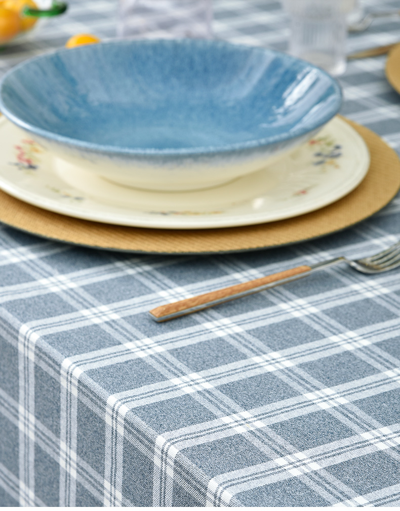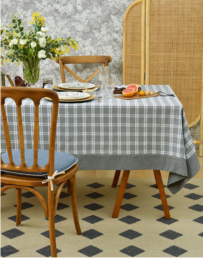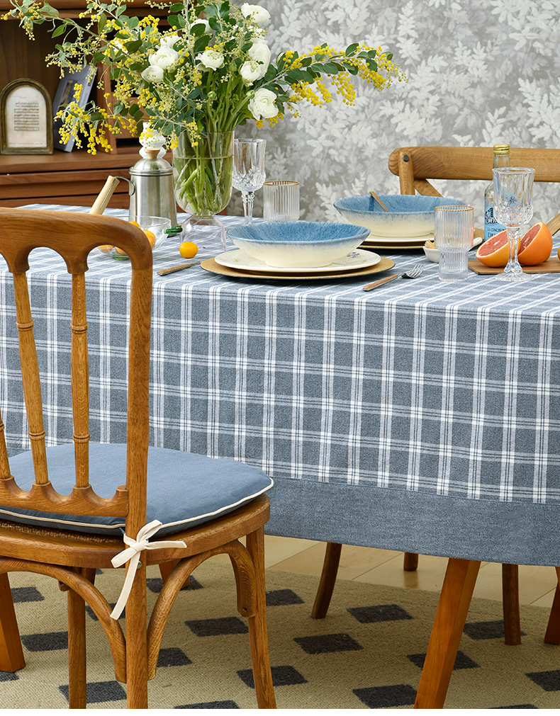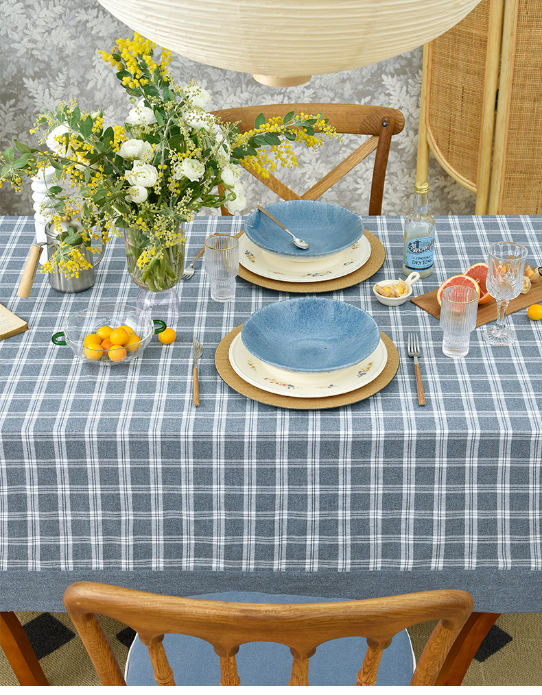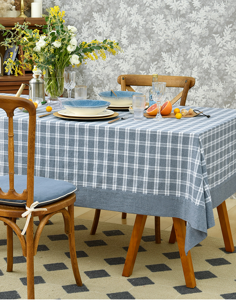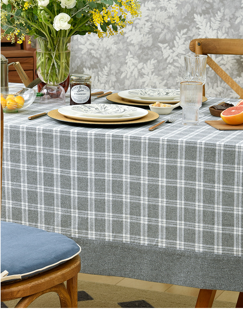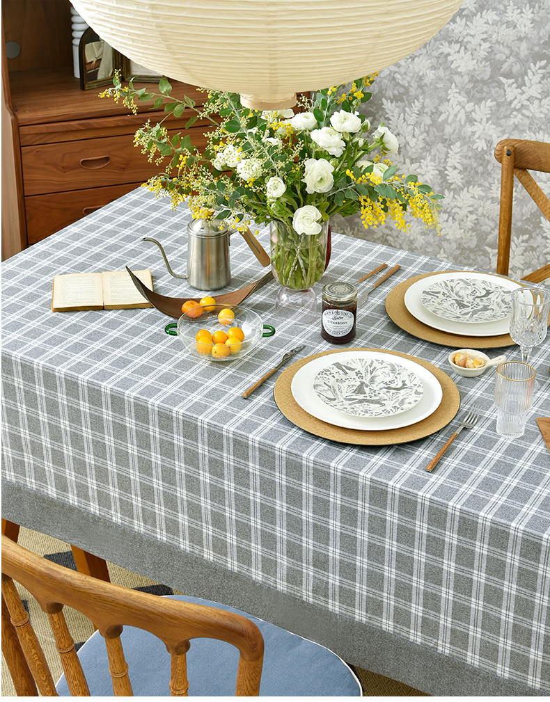 莫兰迪小格纹清新雅致棉布餐桌布