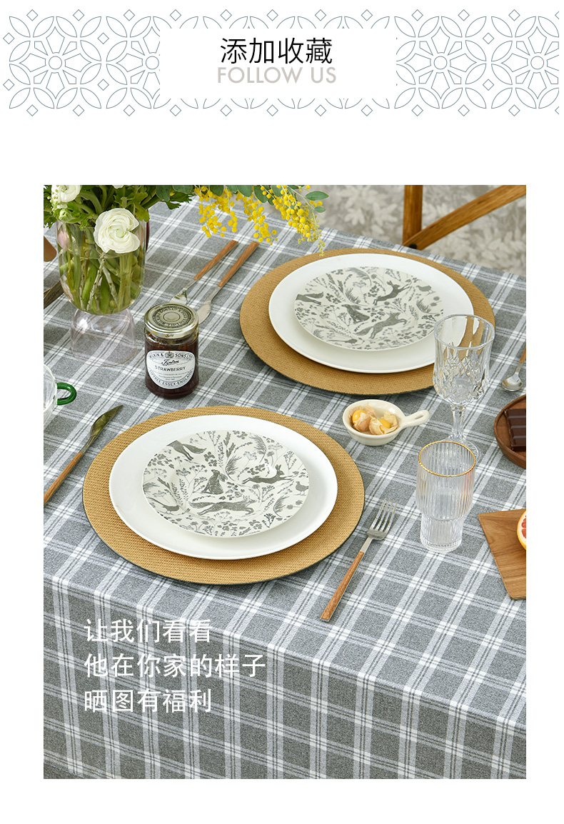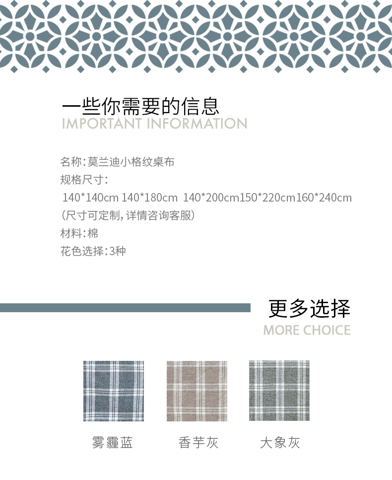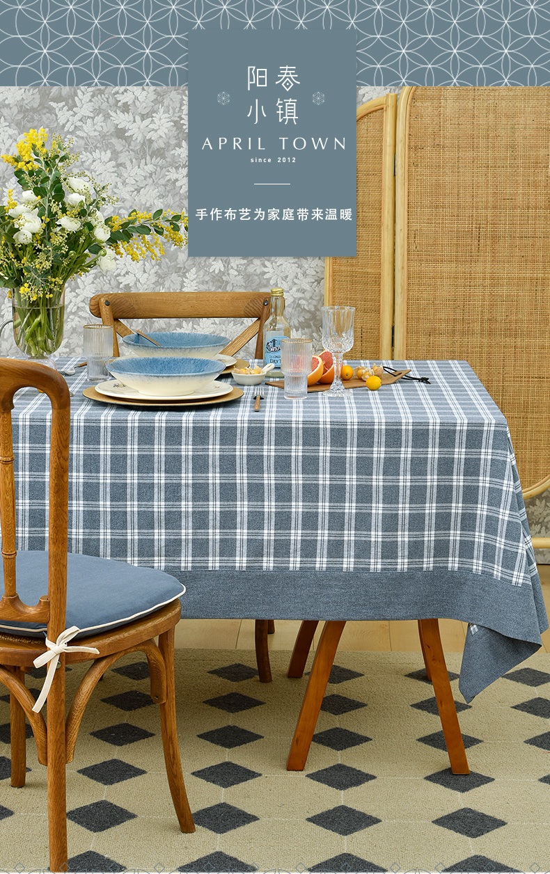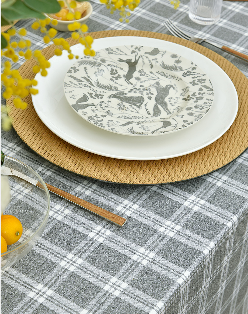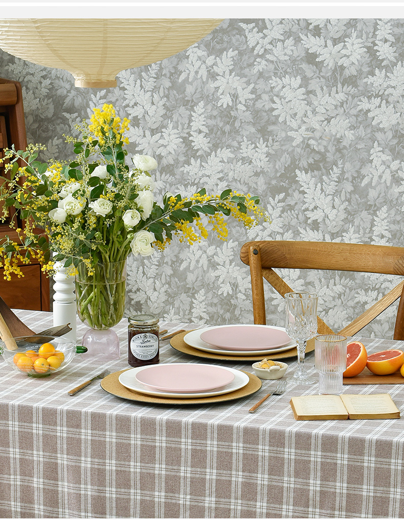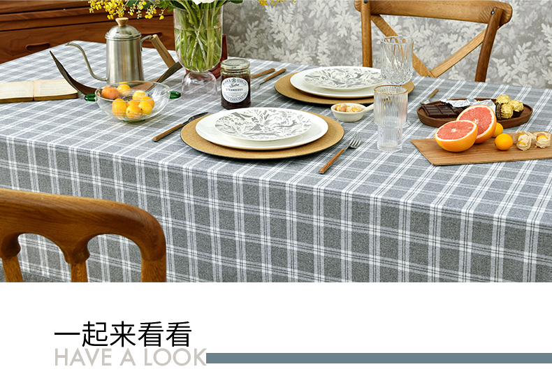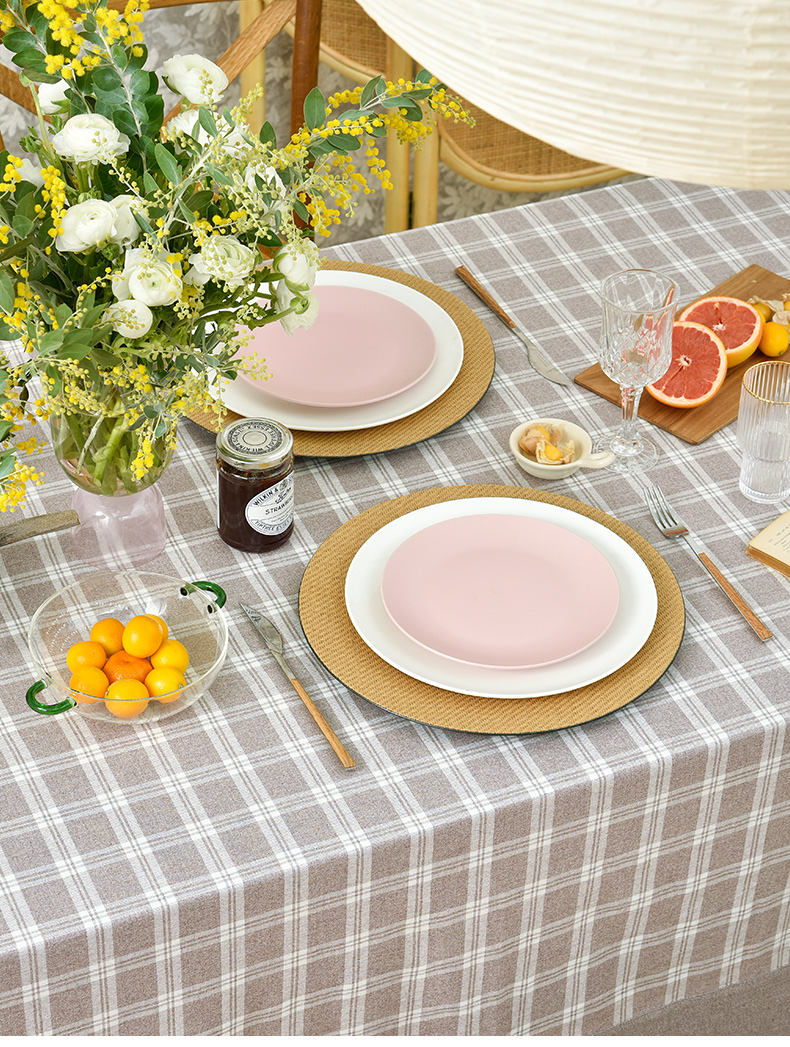 莫兰迪小格纹清新雅致棉布餐桌布