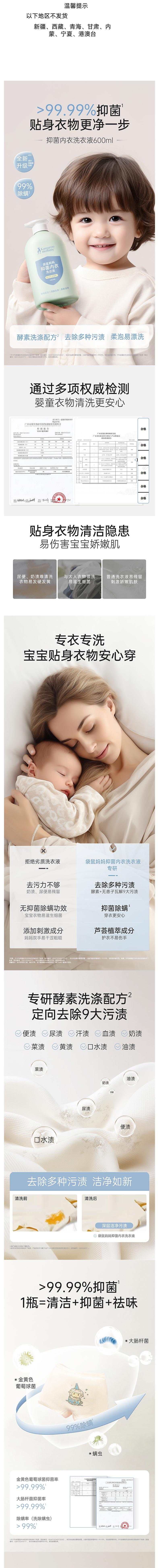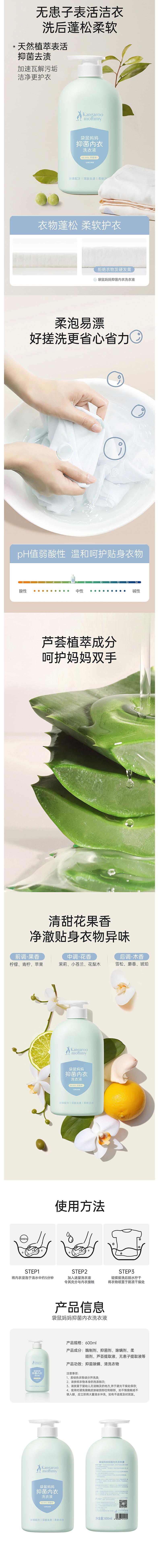 袋鼠妈妈 抑菌内衣洗衣液2.0版600ml A100262201