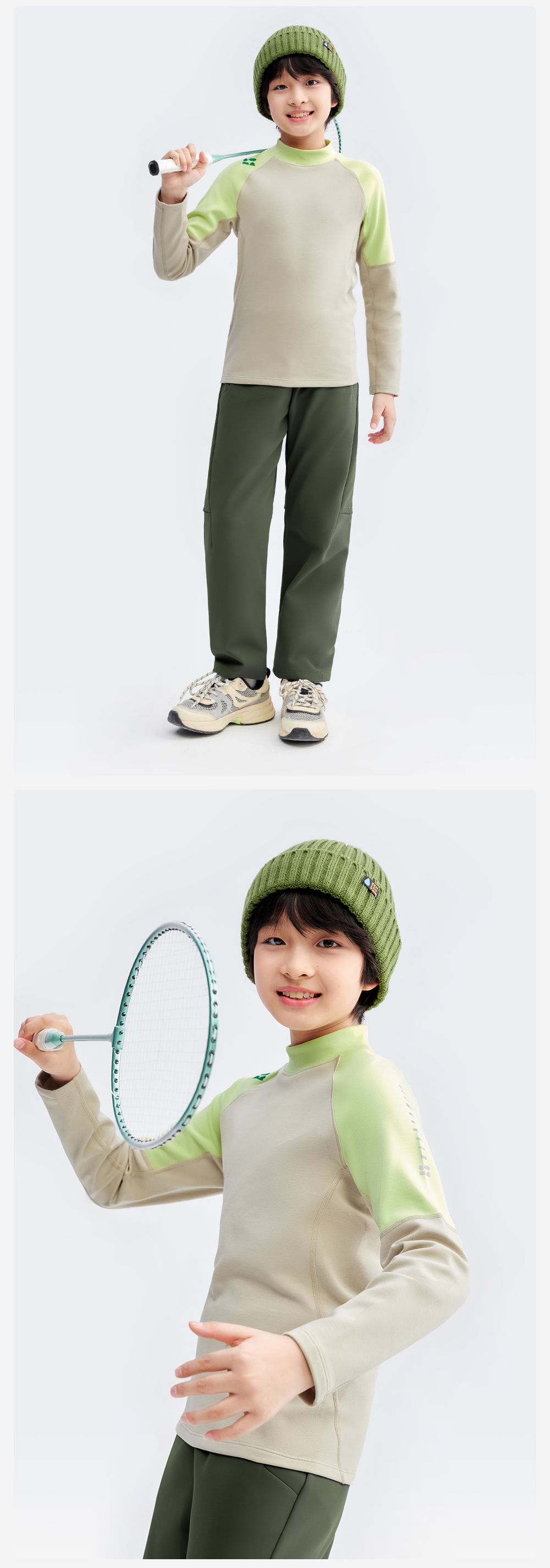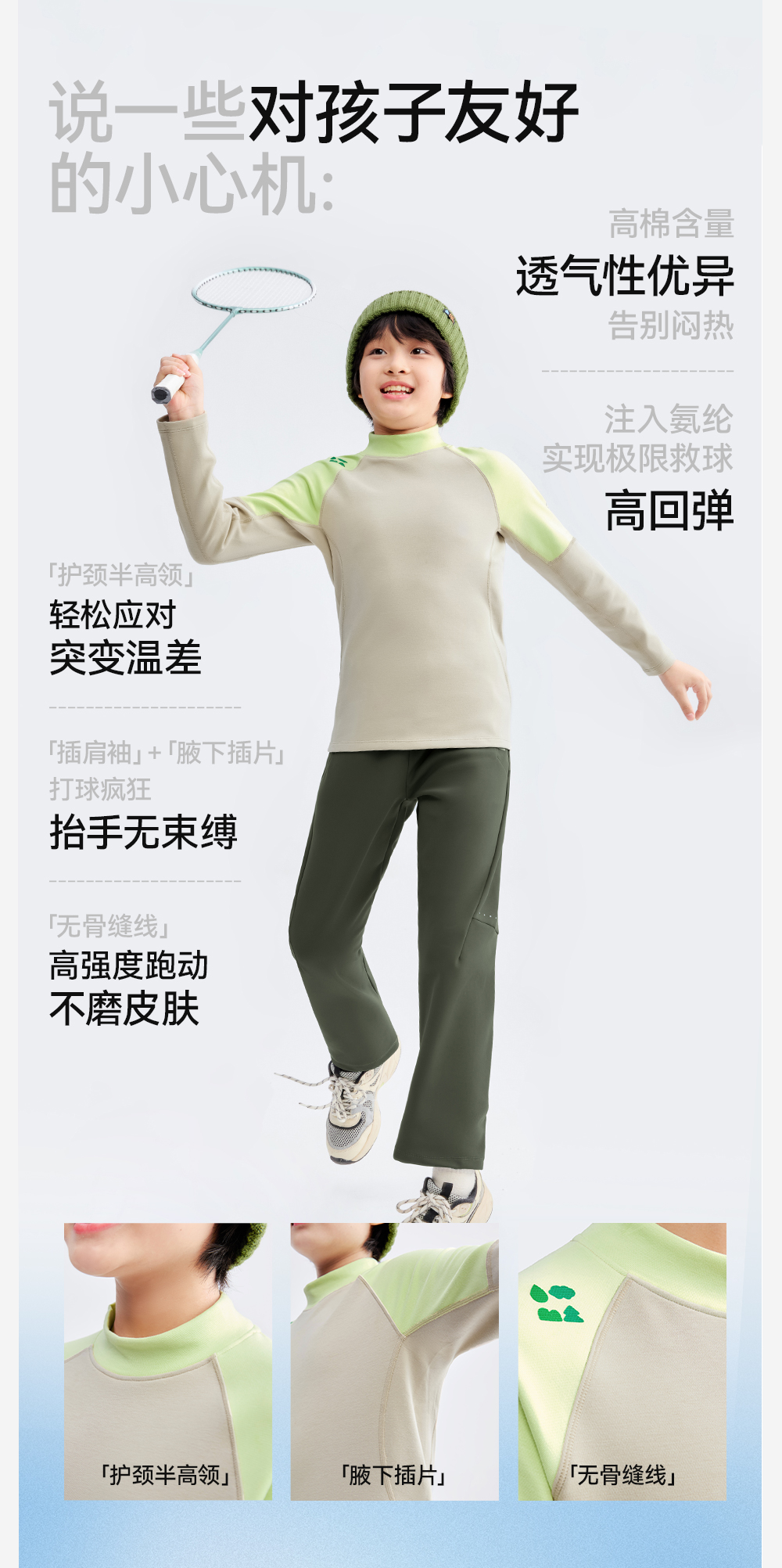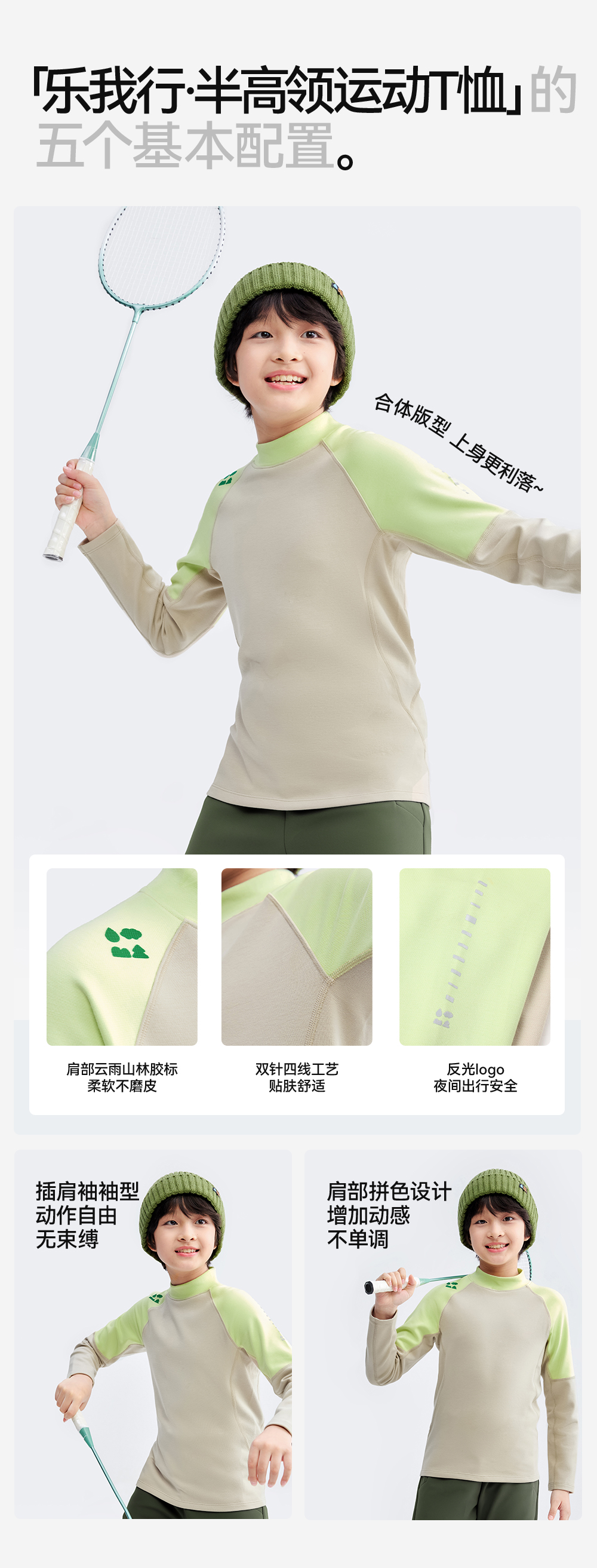 【乐我行半高领T恤】森林棠25秋儿童插肩袖撞色拼接吸湿透气打底上衣60253039