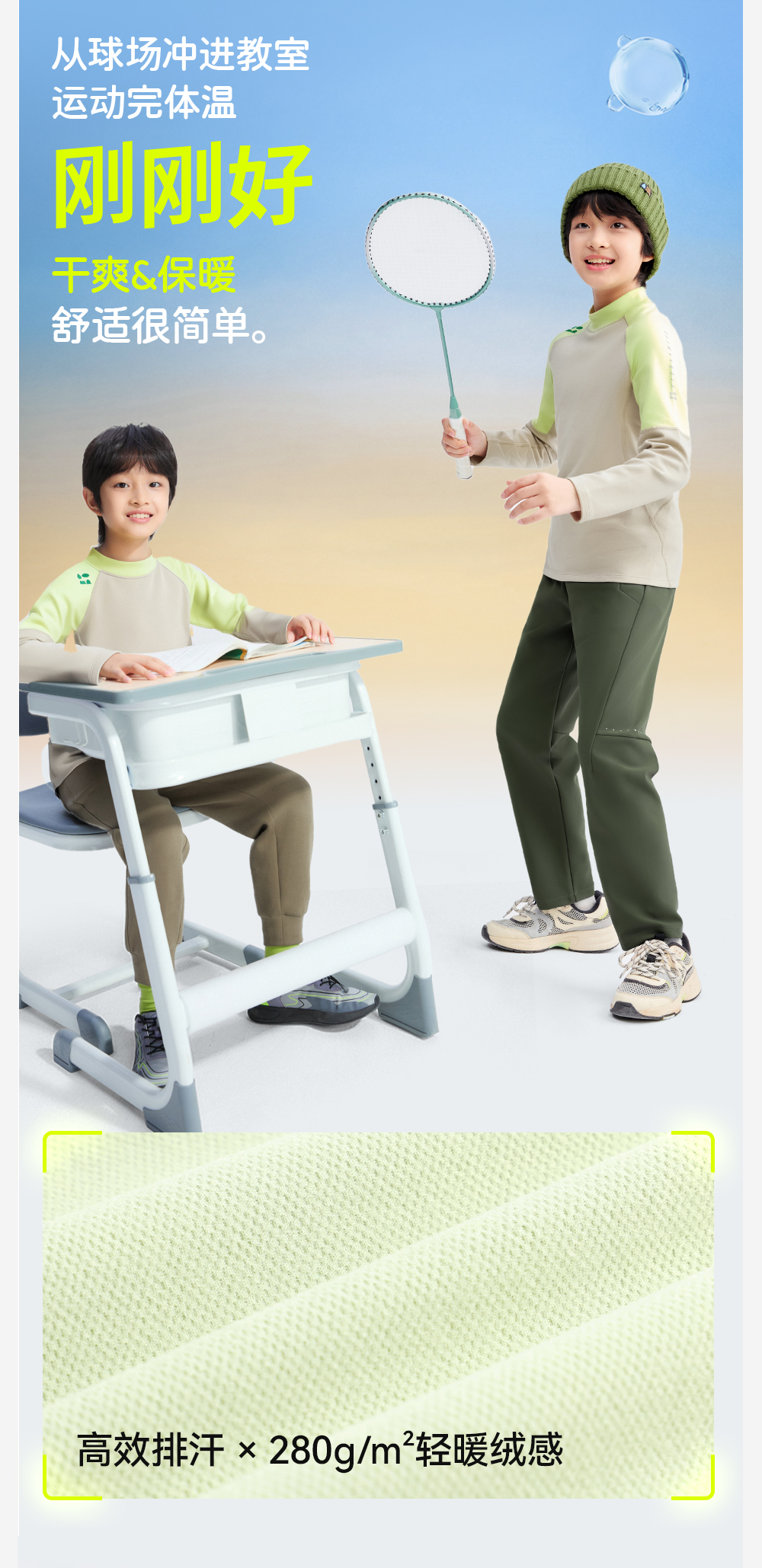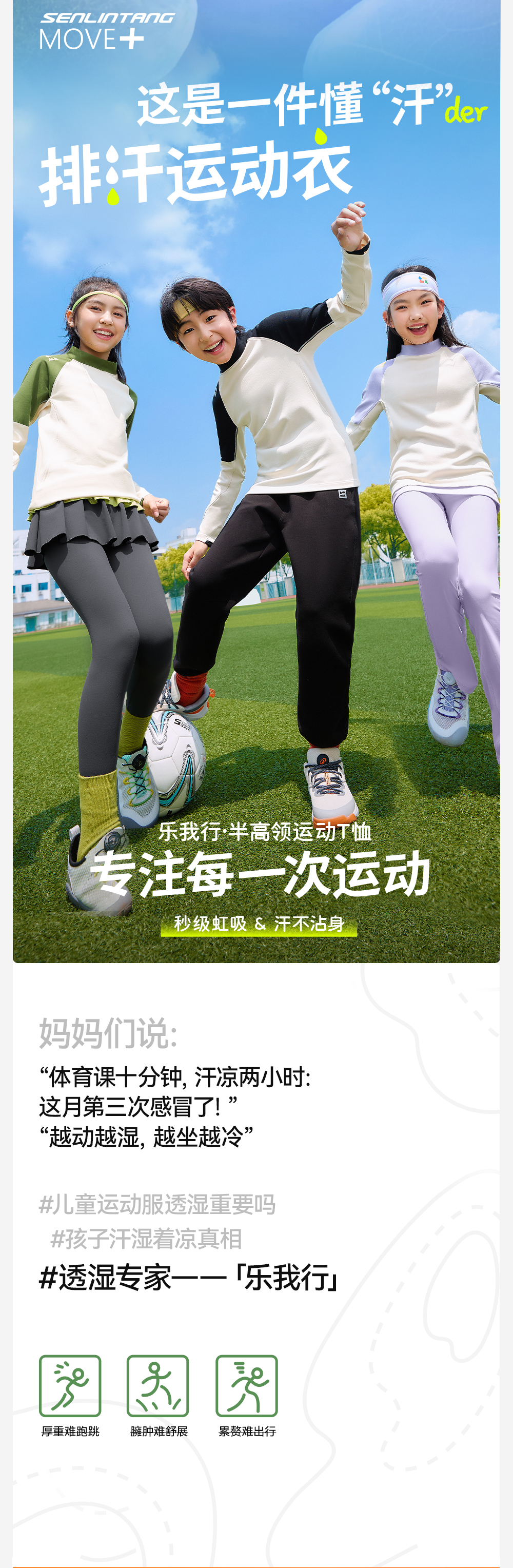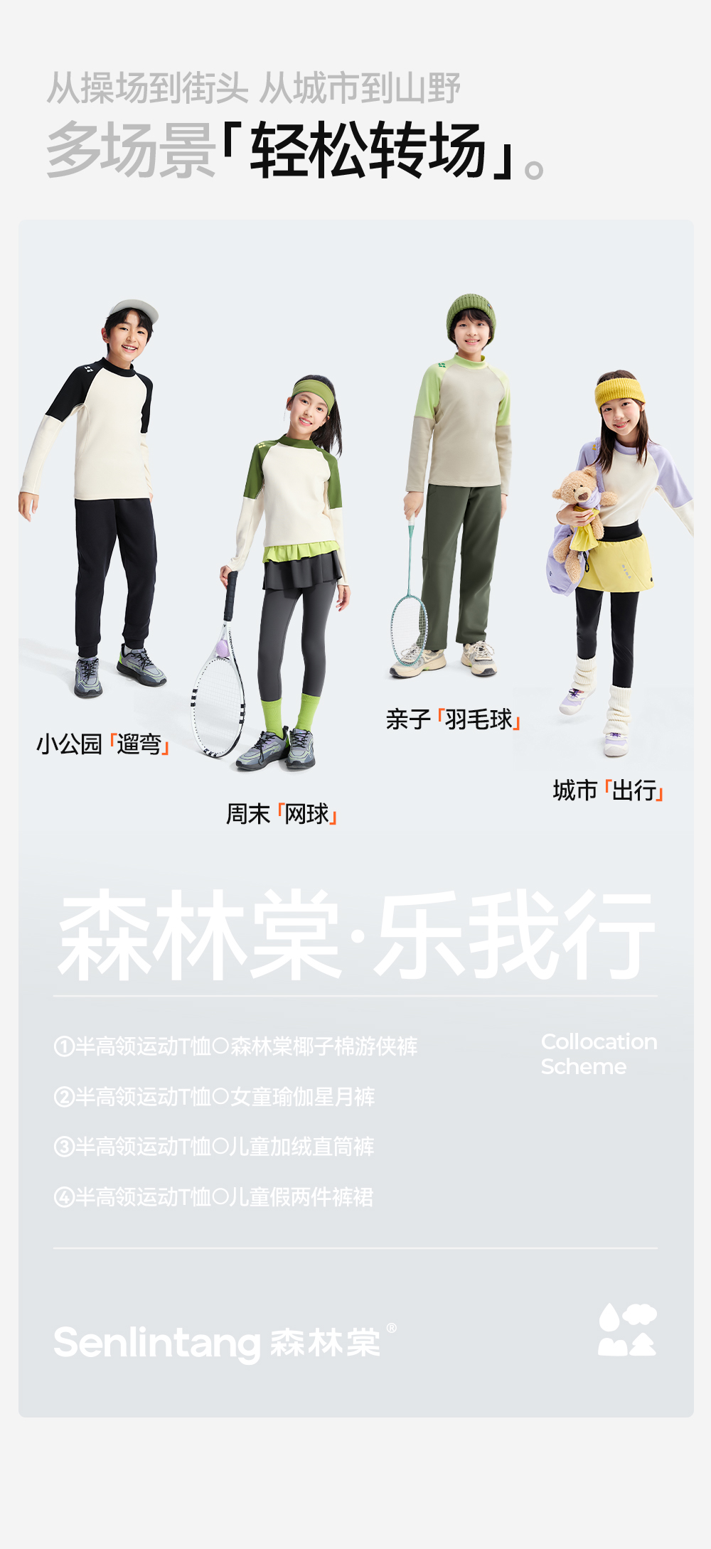 【乐我行半高领T恤】森林棠25秋儿童插肩袖撞色拼接吸湿透气打底上衣60253039