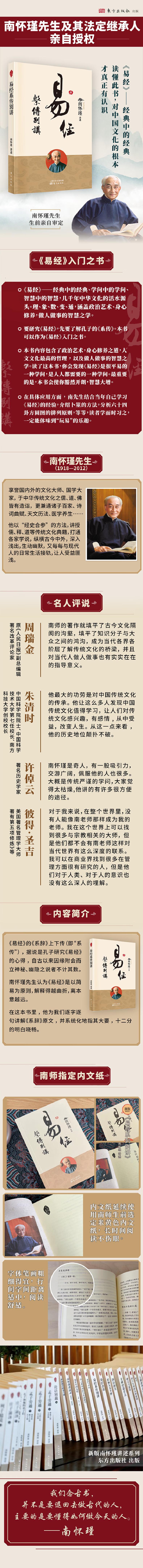 南怀瑾先生(1918—2012)是享誉国内外的文化师、国学大家,出身于温州书香门第,自幼饱读诗书,遍览经史子集,对国学钻研精深,体认深刻,于中华传统文化之儒、道、佛皆有造诣,更兼通诸子百家、诗词曲赋、天文历法、医学养生等等,对西方文化亦有深刻体认,在中西文化界均为人敬重。自青年时代立下弘扬中国传统文化的志向后,南怀瑾先生讲学六十余年不辍。他以“经史合参”的方法,讲授儒、释、道等传统文化典籍,讲解不受教派、门户的限制,打通各家学说,纵横古今中外,深入浅出,生动幽默,又每每与现代人的日常生活接轨,让人受益匪浅,深受海内外各界各层次读者的喜爱。