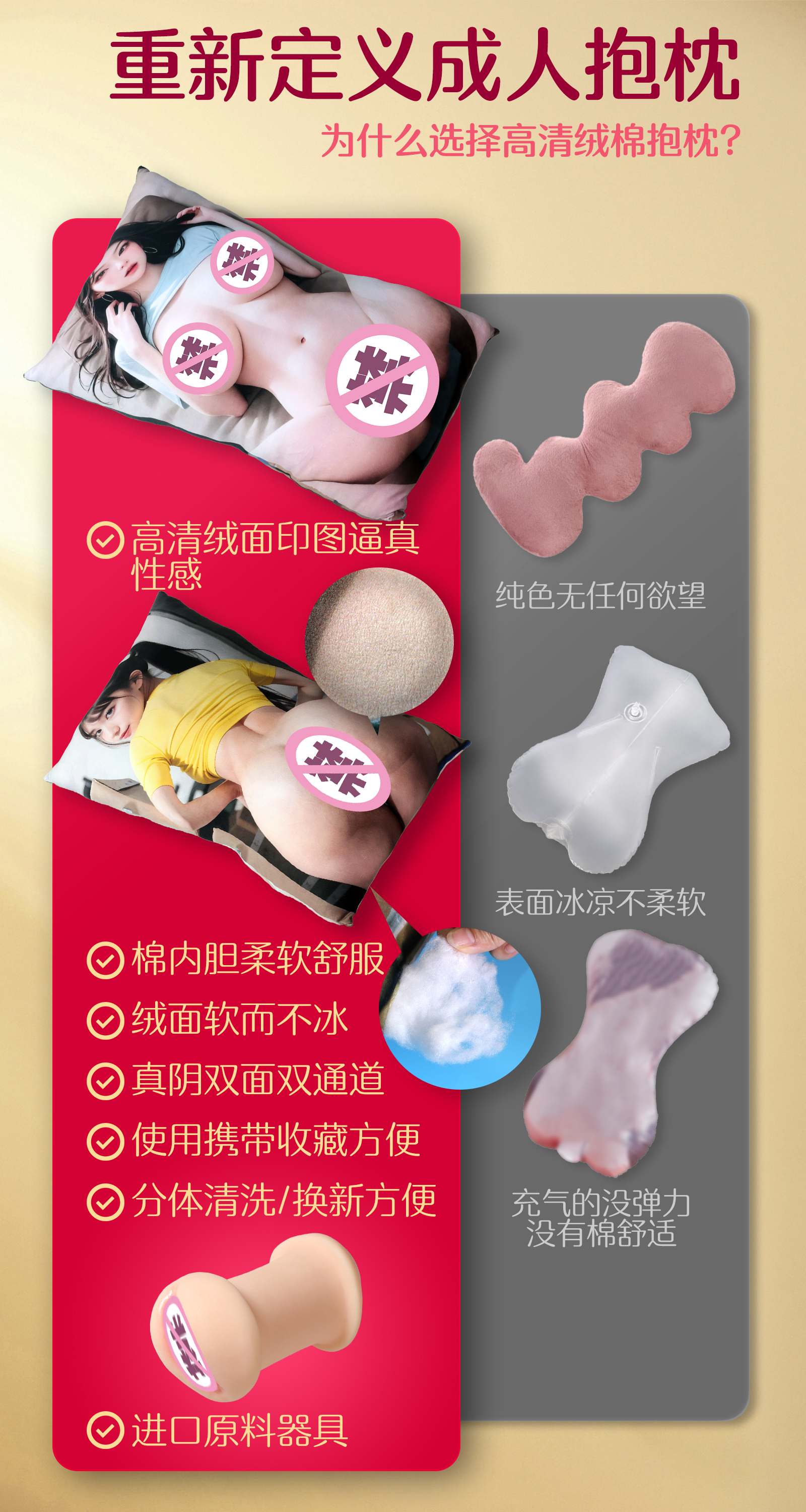 漫渺跨境AI美女绒面抱枕情趣可插入成人男性自慰飞机杯倒模非充气娃娃