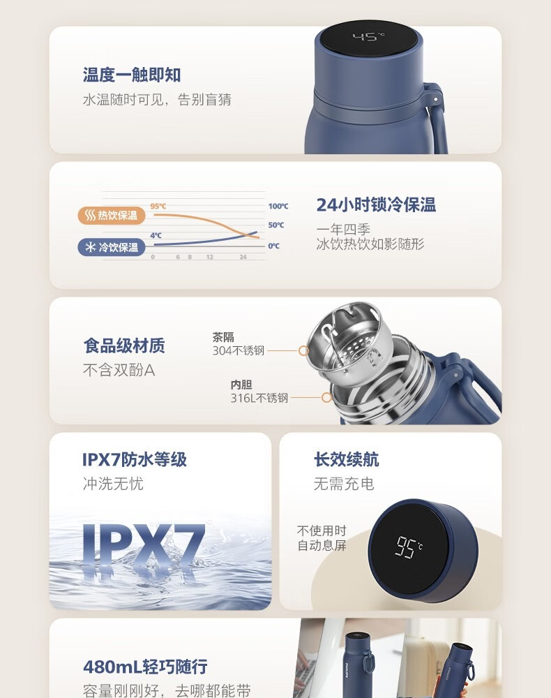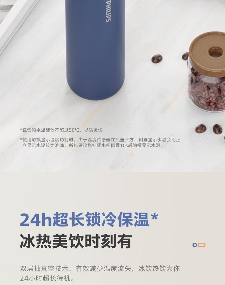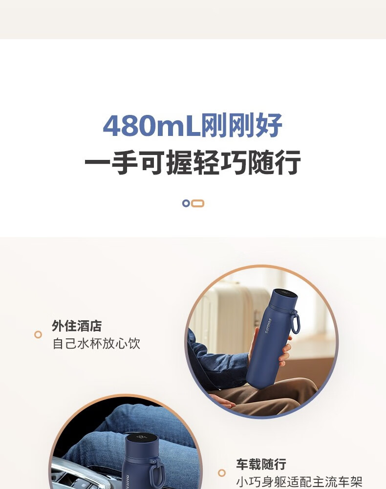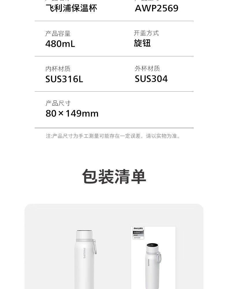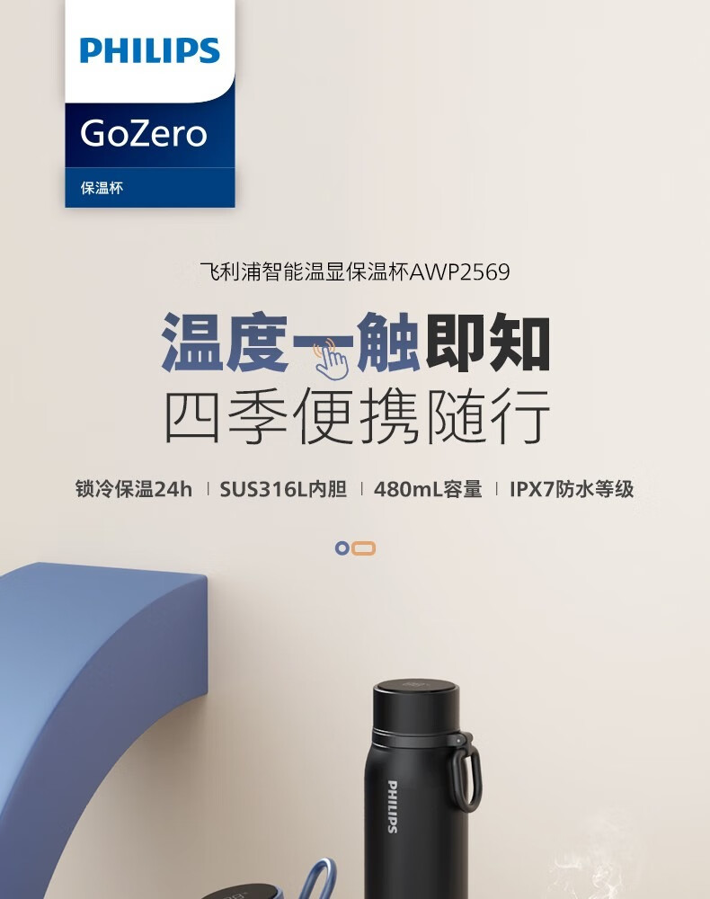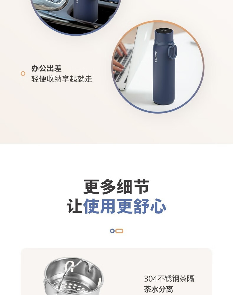 飞利浦PHILIPS温显保温杯SUS316不锈钢带茶漏带提手AWP2569