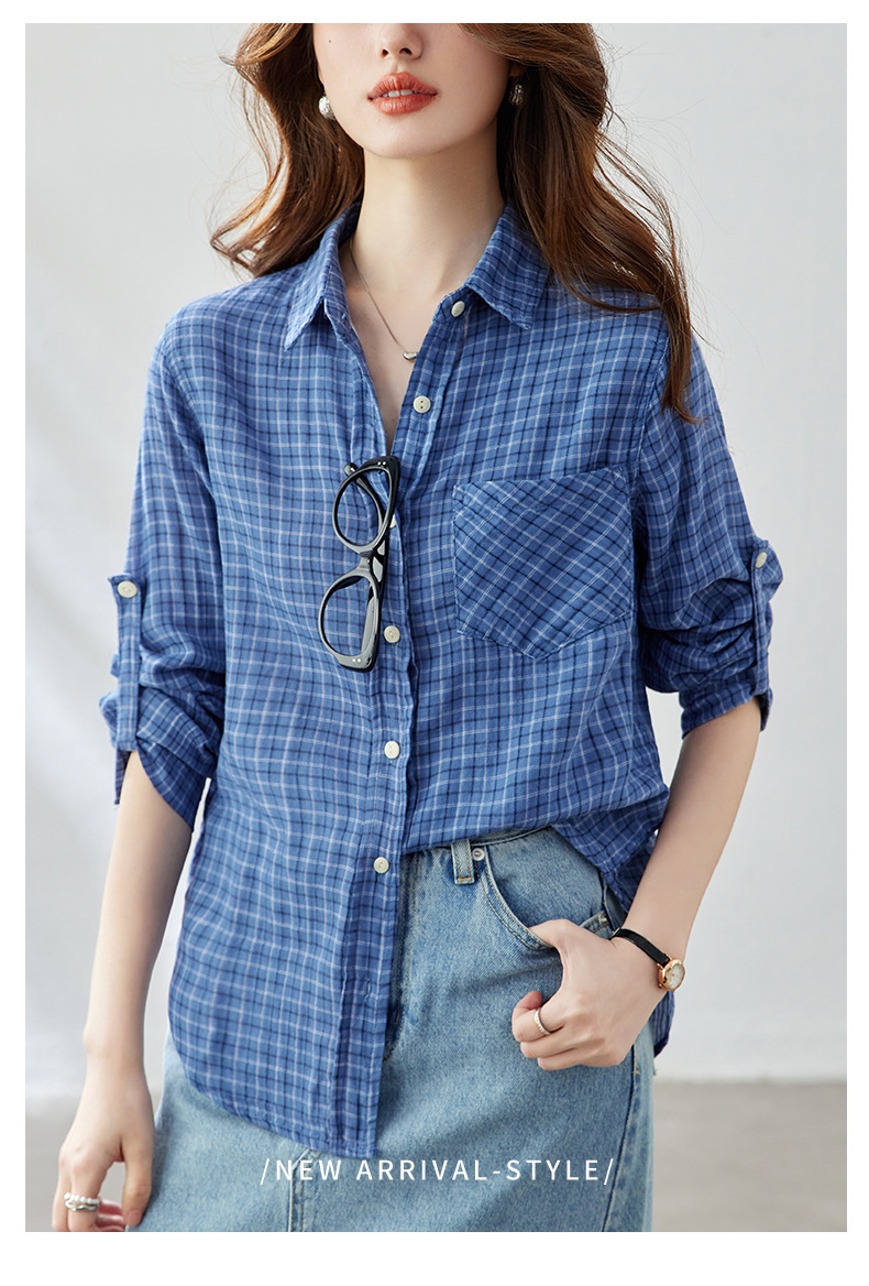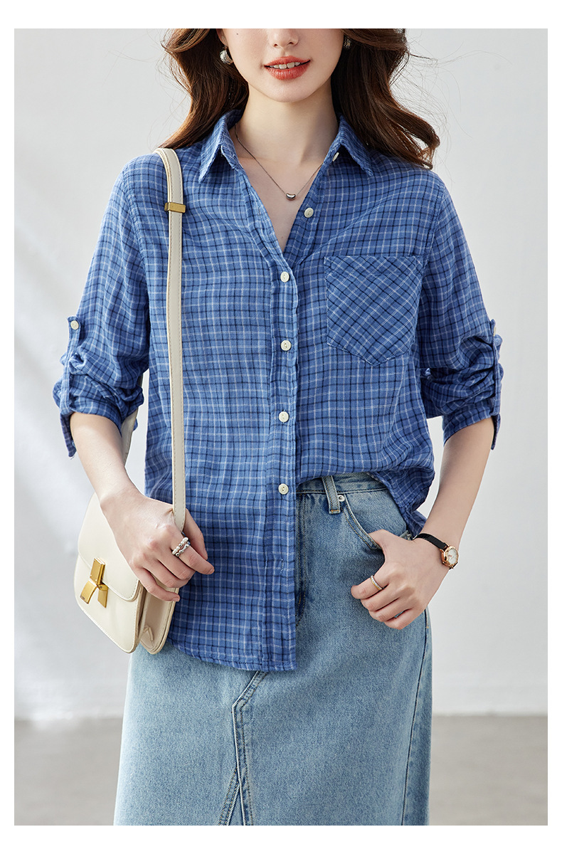 馥迦复古学院风格子衬衫